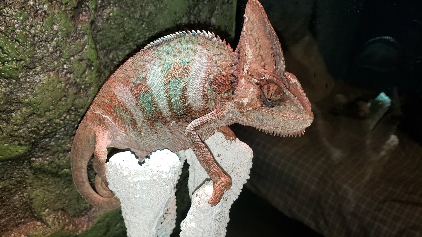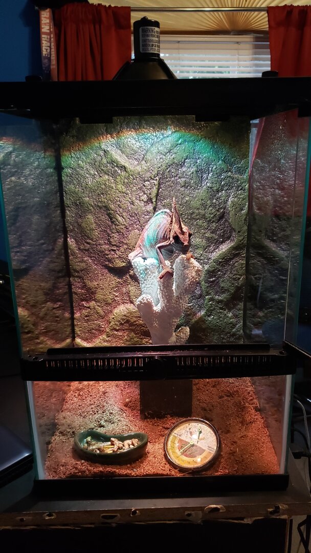 Last night at 10 oclock at night I had a friend that texted me and told me I needed to take her male veiled, Tiago, because he was acting really sluggish and she was worried about him. I had never seen this chameleon before and didnt know he even existed. She gave me a little skeleton of a lizard in a 5 gallon glass enclosure with a fake cactus plant in the middle of it and begged me to help her learn how to care for it.