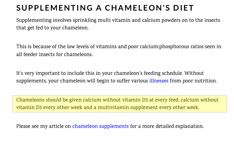 There’s too much info to correct for it to be worth it when there’s other better sites, plus it’s an affiliate website, which means he probably won’t change much/anything at all so he can keep the links up. Why not you be the one to give him feedback? Plus, I don’t see you wanting to correct every single bad chameleon info website out there, either.