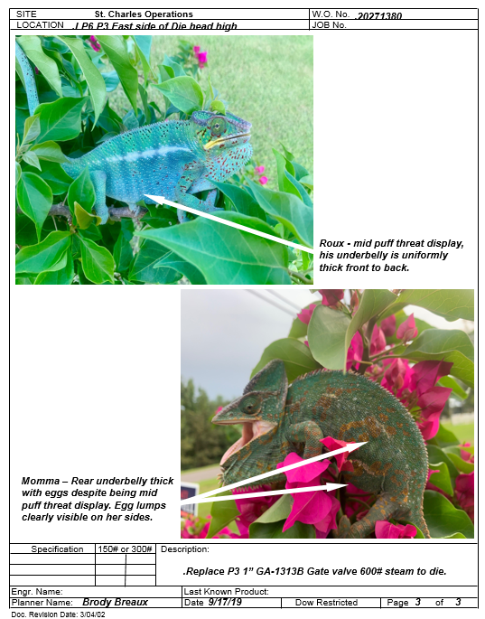 I've been seeing a lot of inexperienced keepers(no offense, I made the same mistakes in the past) mistaking a chams puff threat response for gravidity. The pictures below are of a male and a gravid female but the point is the same, both are displaying their instinctive(IM TALKING TO YOU JO! lol) puff threat response.