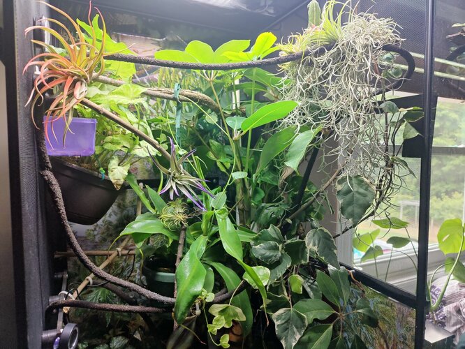 it’s more about the pathways IMO(which you have, no criticism from me…just for the sake of discussion). We do see people here that have way too many plants/not enough moving room for species like panther/veiled. Almost any source that’s studied then in the wild speaks of them being out in the open and in somewhat dry climates(at least more so than what people think when they see chameleon). Montanes really appreciate the densely planted enclosures though for the most part.I wonder if the reddit plebs would think this is too many plants hahahah
