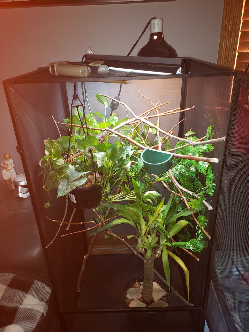 • Temperature - What temp range have you created (cage floor to basking spot)? Lowest overnight temp? How do you measure these temps? 84f Basking an 67-70f mid to floor bottom. 61f overnight. Temp gun an digital probe.