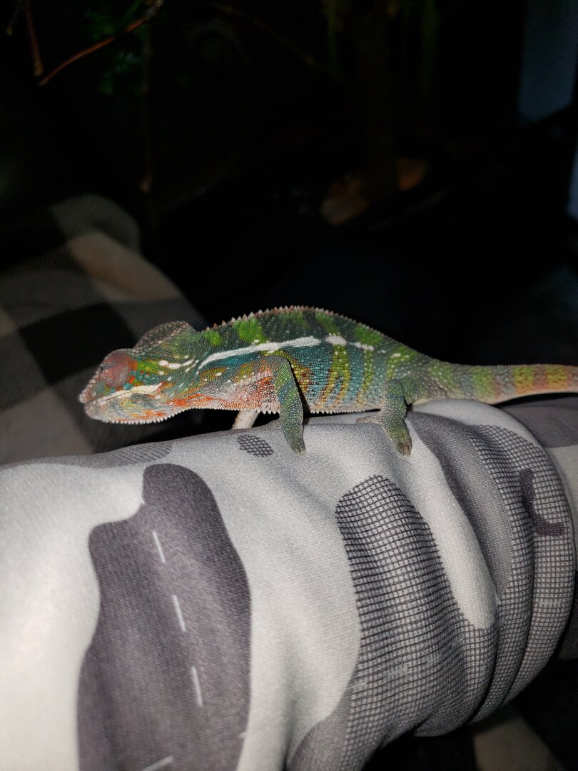 • Your Chameleon - The species, sex, and age of your chameleon. How long has it been in your care? Panther male an 3 months old. 2 weeks
