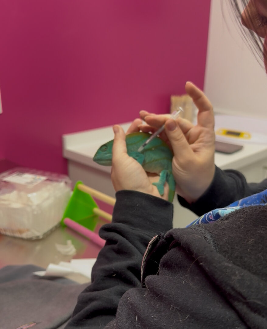 She has a very LONG tongue. Cera was taken to an exotic vet yesterday and received pain medication and antibiotics.