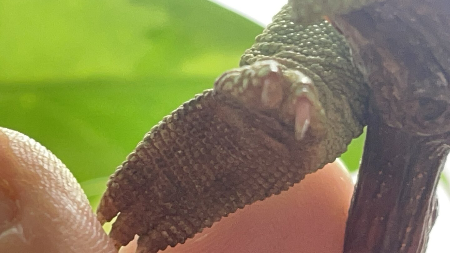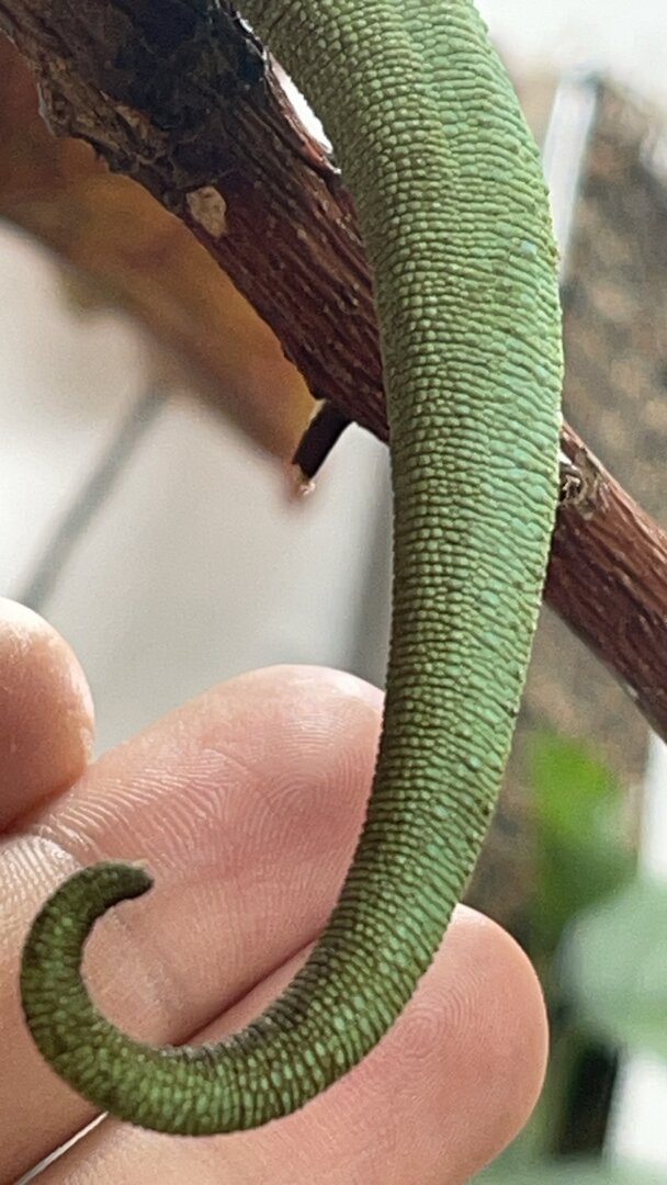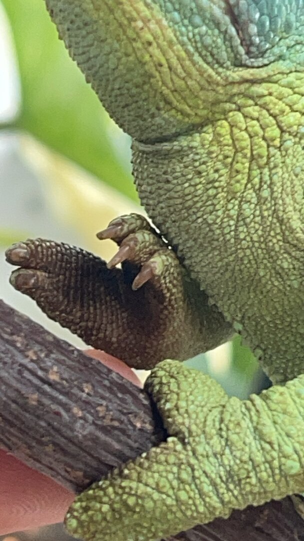 I have a Jackson his name is Mr. Peanut . I’ve had him for about 2 yrs but I’m not what his exact age is honestly . My concern is he has developed over time dark brown under hands feet and under his tail ? Not sure why exactly ? He seems to use his extremities normally never see him raising any and holding them up or anything unusual. This is his home he lives openly and freely amongst my plant collection in my living room humidity is intermittently 60-80 % temps around 65-78 maybe and he uses sticks and limbs from trees outside to climb about the place. First thing I thought of was foot/tail rot but he seems fine eats fine shows no symptoms so then I thought maybe it’s because of the natural wood he’s climbing around on (the sticks) ? Could make his feet tail turn brown in time ? Idk any ideas?