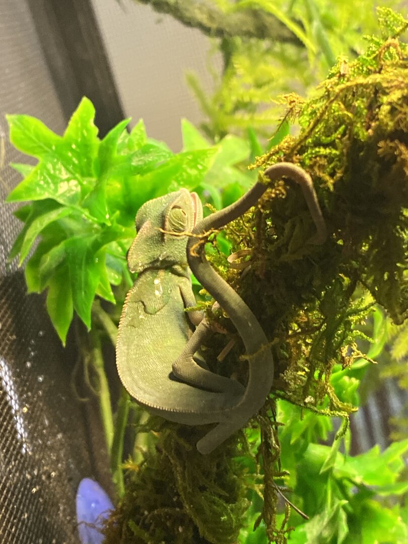 • Watering - What kind of watering technique do you use? I have water dripping onto fake plant, I see him drink daily. How often and how long to you mist? I spray him twice a day and will most as much As I need to keep humidity. Do you see your chameleon drinking? Yes