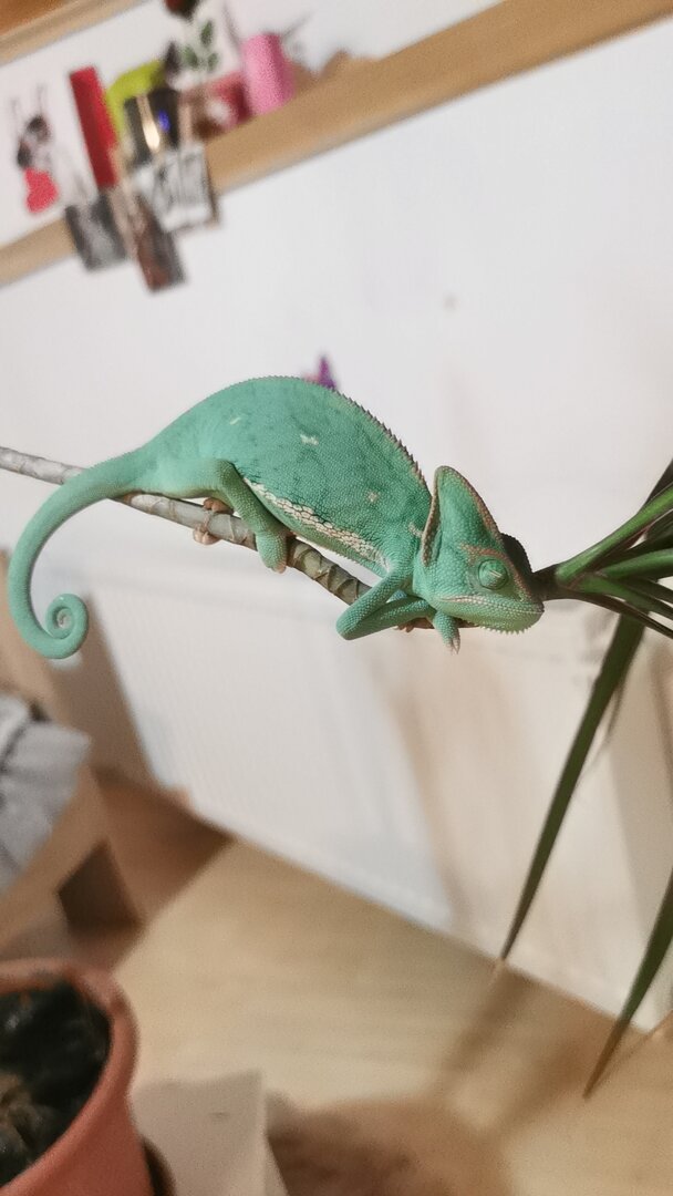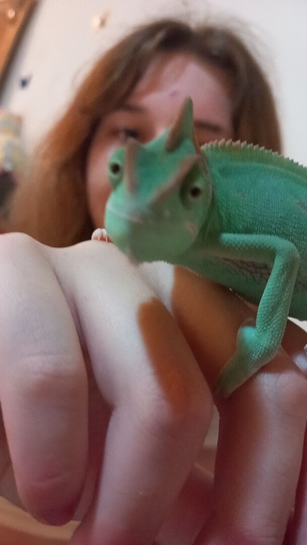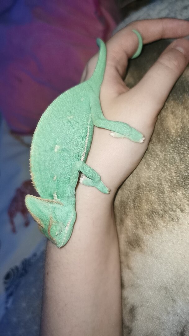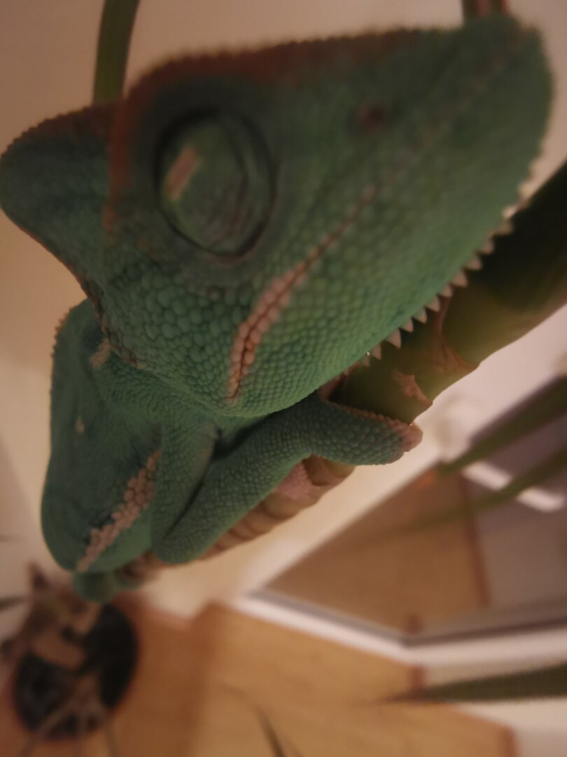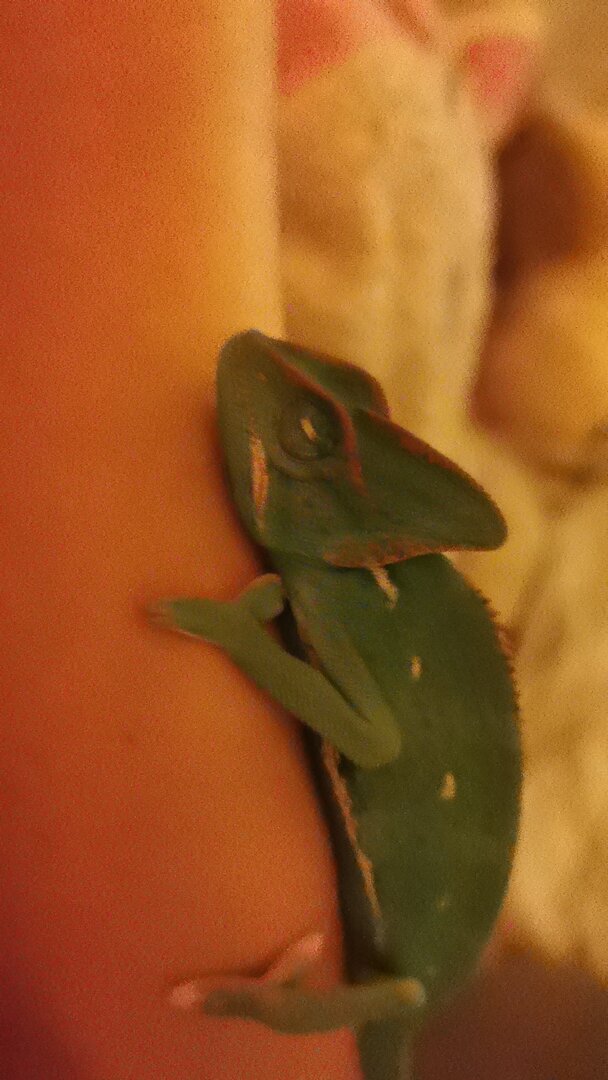 And I'll iterate again - find a reptile vet ASAP if you're hearing clicking/wheezing/popping sounds from her, and if she's gaping a lot. Chams generally won't recover from RIs on their own.