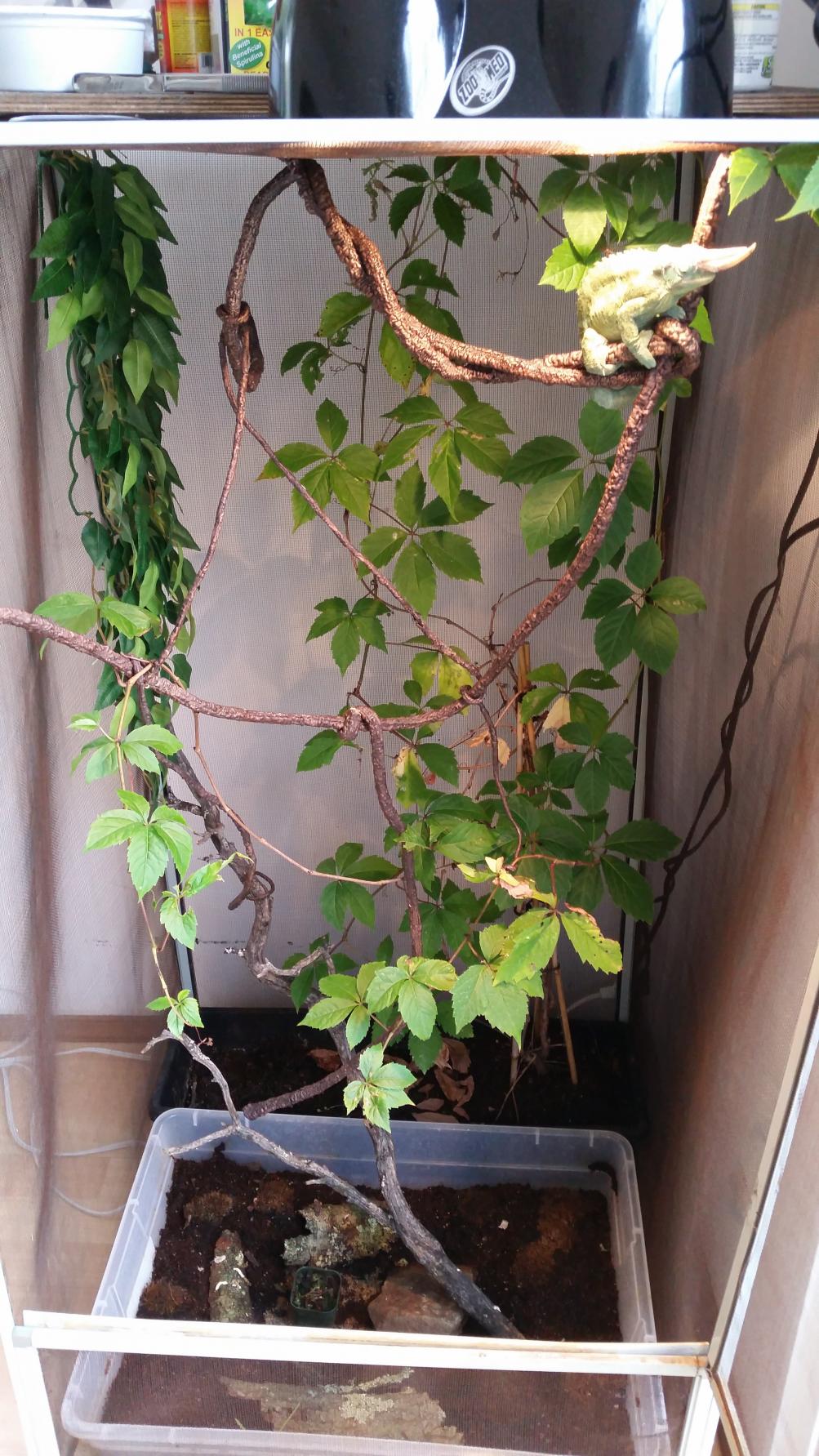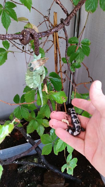 About a year ago I asked the forum here if anyone had experience with salamanders and chameleons coexisting peacefully. I got the idea because salamanders thrive in damp wet areas that have mosses, rocks and barks for hiding places.