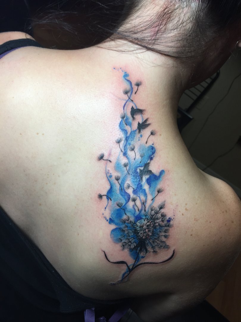 That one was actually a cover up on my first one. The first one was about 3 inches in diameter and was a moon and sun in a circle. I got it when I was 18. It was very very faded out and the lines were aweful. This one I got after my dad passed away. There are three black birds in it. One for my dad, grandma, and grandpa. Then I have one on my lower abdomen that was a little fairy (pre pregnancy) became tinkerbell on steroids after pregnancy. So I did a very large flower on that one to cover it up. Hurt like hell because he had to put so much color into it.