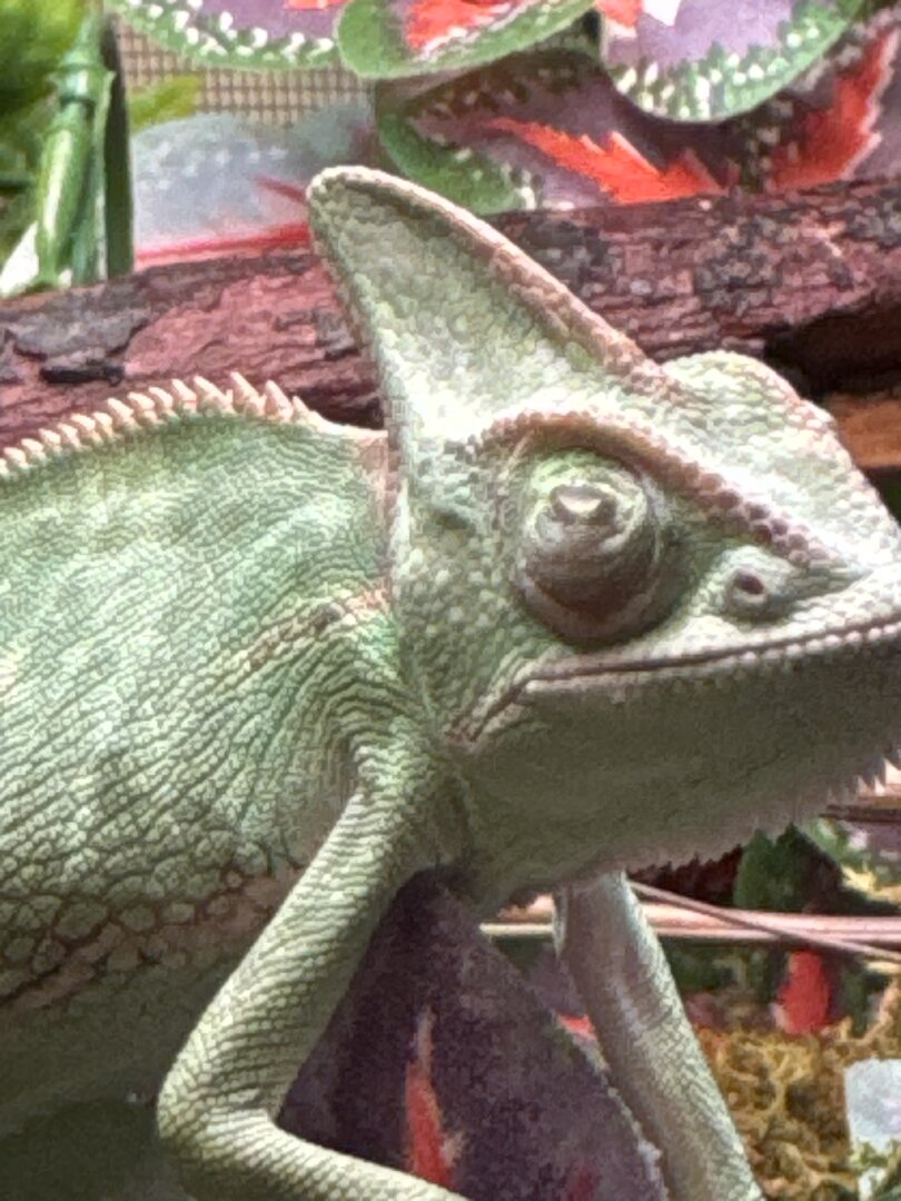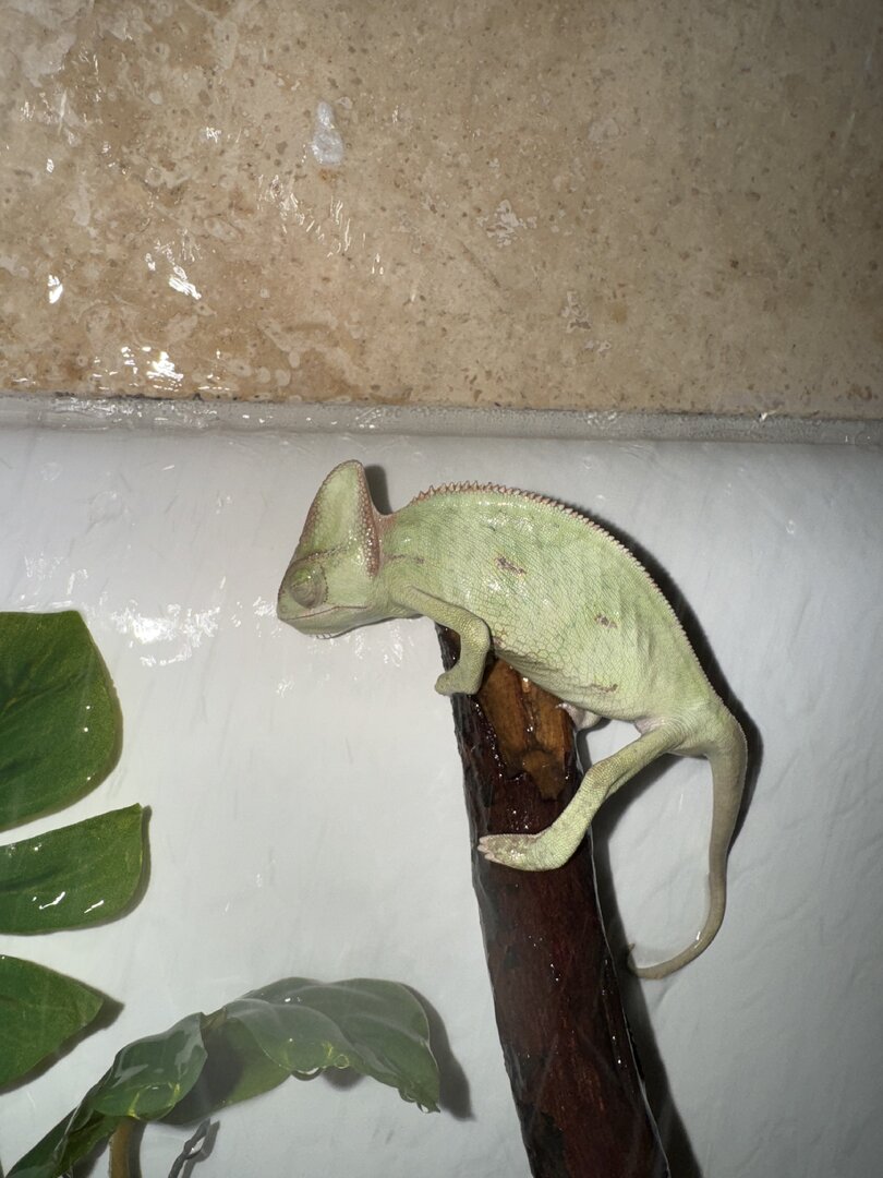 Hi my chameleons eyes have been closed for quite awhile now. About a month. I’ve tried changing her food diet. Giving her vitamins and all. It started with one eye and moved to the other. I’ve tried washing with saline and nothing seems to be working she liked when I run the shower and have it bounce off the wall.