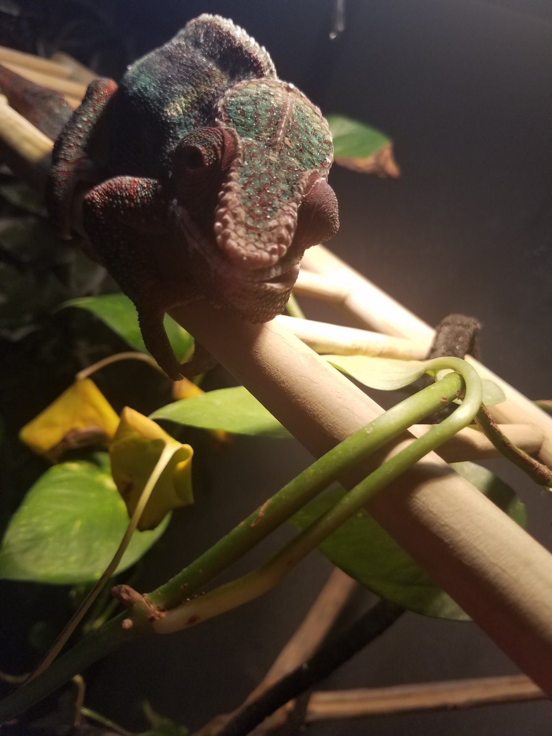 I have owned chameleons for a long time and all mine have passed from old age and I've never had issues. My chameleon "Ninion" has a lump in/outside his mouth. I have never seen something like this before. Hes got a mistking and is misted daily with a drippee and fed crickets and superworms every other day or two. Hes about 4 years old. Pictures attaches. I haven't taken him to the vet yet. This showed up about 4 days ago
