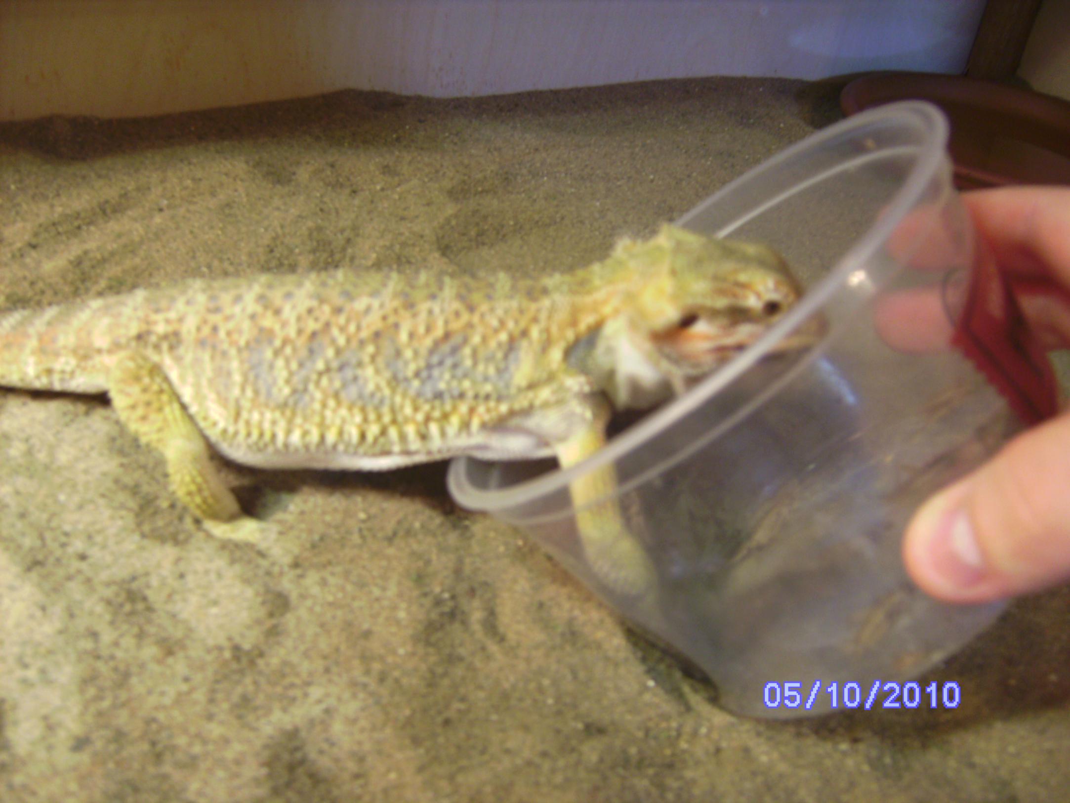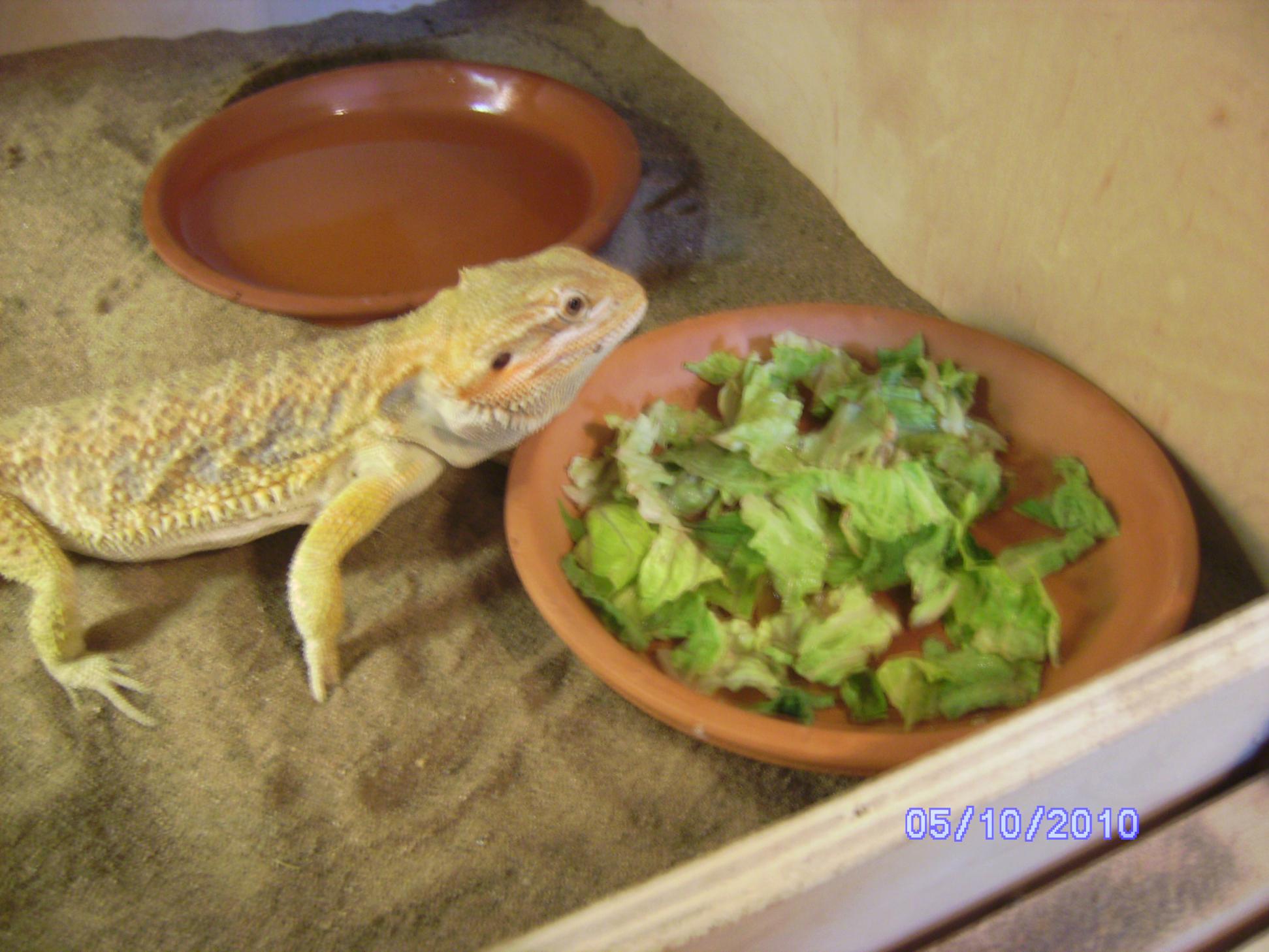Right after he finishes his crickets I will move the romaine lettuce around and he takes off to it and starts eating it. Salad for dessert:p