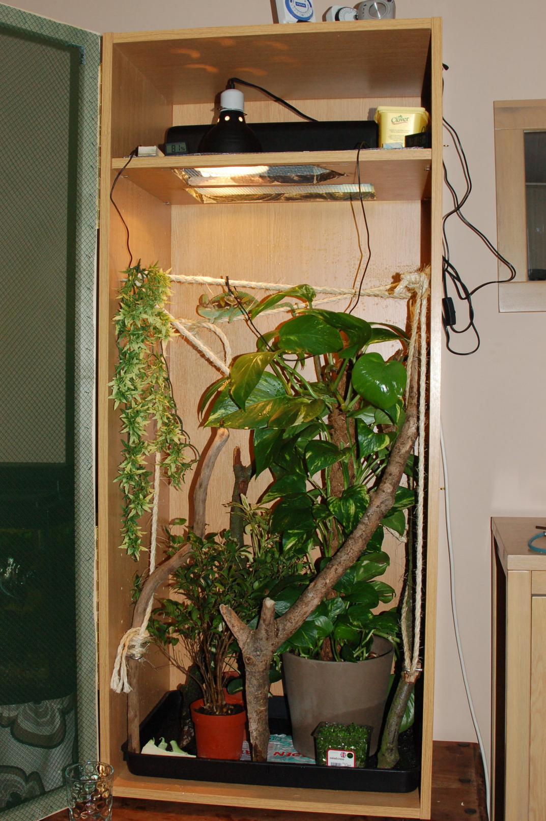 His house is glass with a mesh top - we are getting a new wooden viv for him at the weekend.