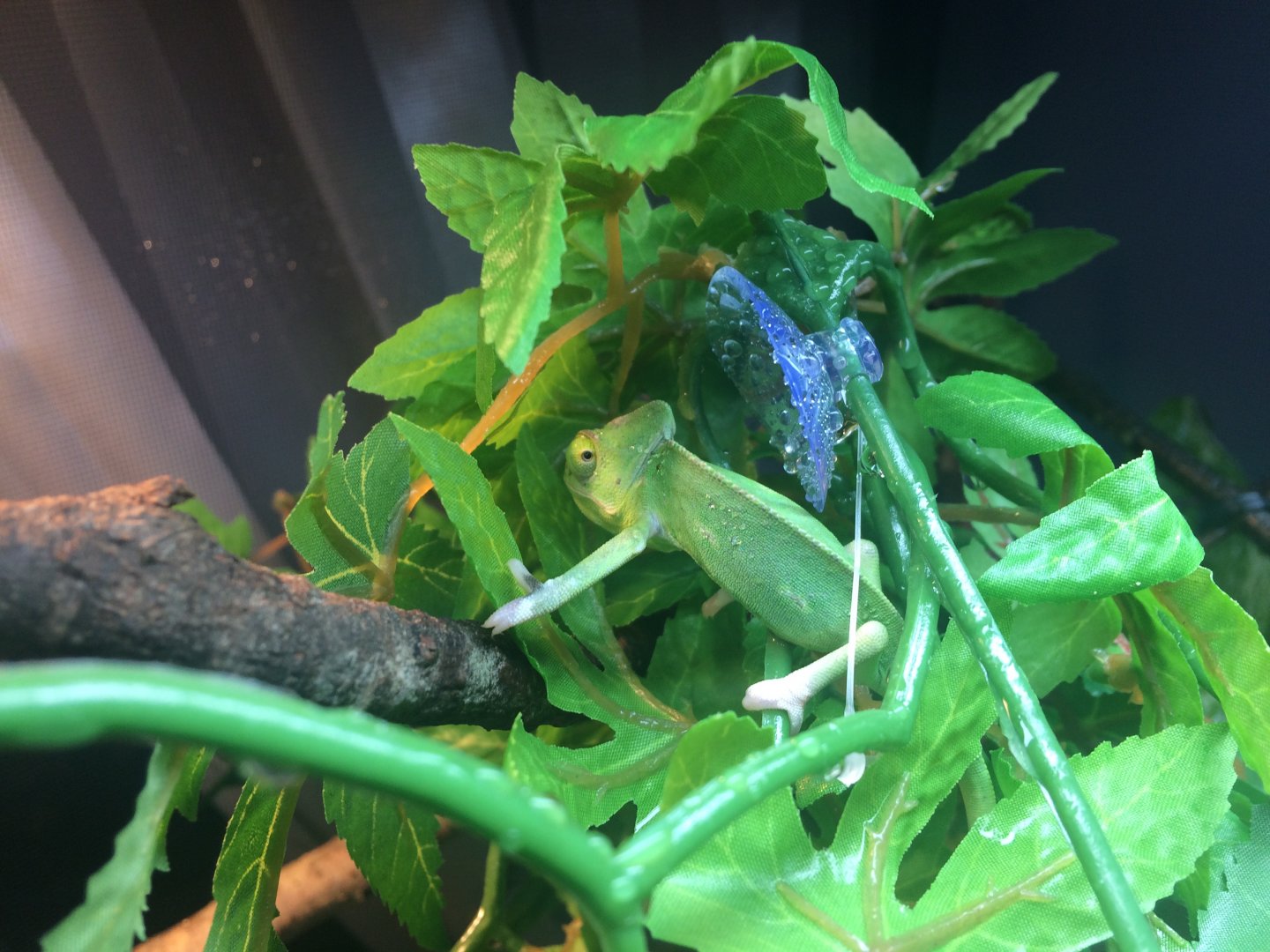 That same day, out of impulse, I bought another older cham from petco that I had been eyeing for over a month. And now that she’s in her proper home, she’s thriving and definitely seems to be a happy cham. Roams throughout the random jungle I built, actively hunts, drinks, gets mad at and bits inanimate objects.
