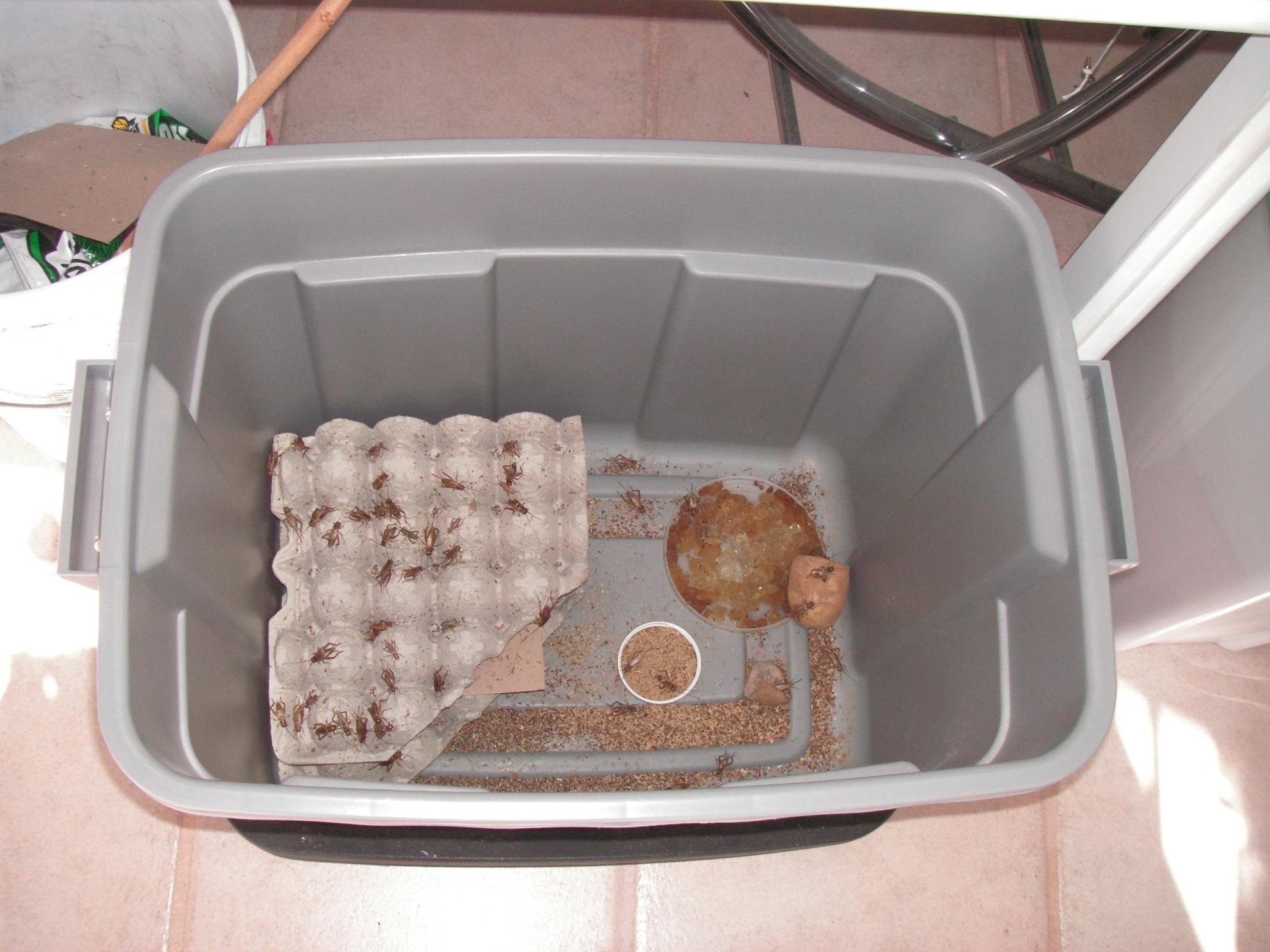 Very nice Tim. I use the same setup for my crix. I just use damp paper towels for water and feed them cricketfood.com gutload. I still have a few pounds of this but will be getting some crack when it runs out:rolleyes: