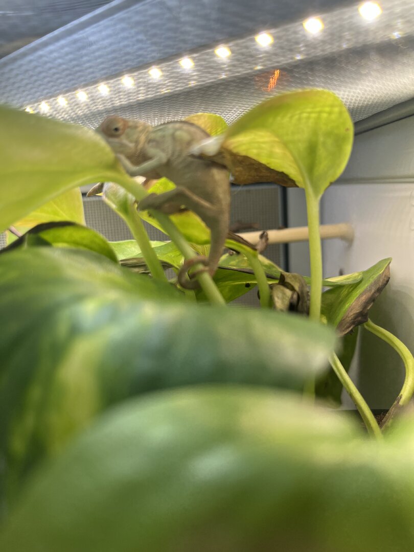 . Among my forest edge near the top of the enclosure, I would like to have some sort of climbing plant growing up the 2 solid sides from the bottom. From what I can find, ficus pumila (wandering fig) trachelospermum jasminoides (star jasmine) and Tradescantia Zebrina (wandering Jew) are all considered chameleon safe. Has anybody tried this in their enclosure? Did you find that it made it more difficult for your Cham to find food? Which plant did you choose, and did you have any plant issues (soggy leaves, root rot, plants drying out? Dying? Etc.). I’m new at this, and don’t want to get it wrong…