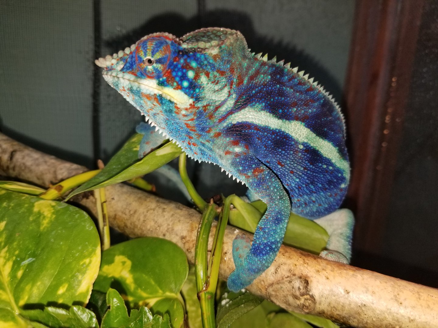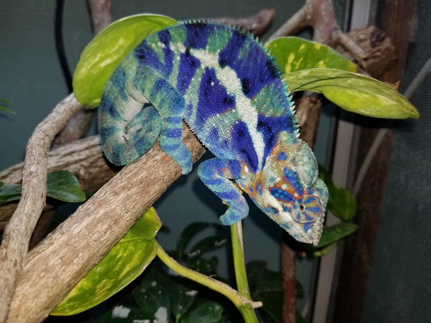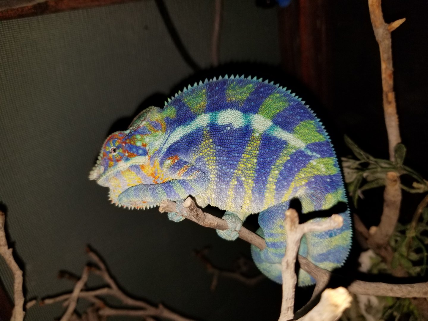 This second shot is the most recent; he is also sitting under the lamp so he appears a bit more bright blue than his real color of more turquoise green.