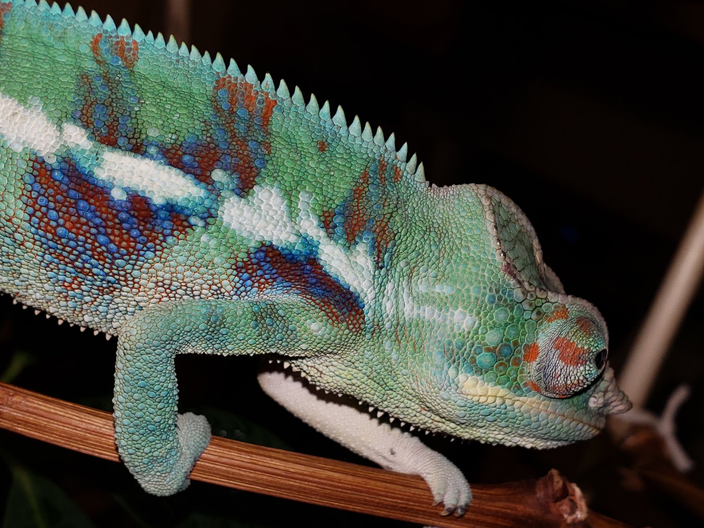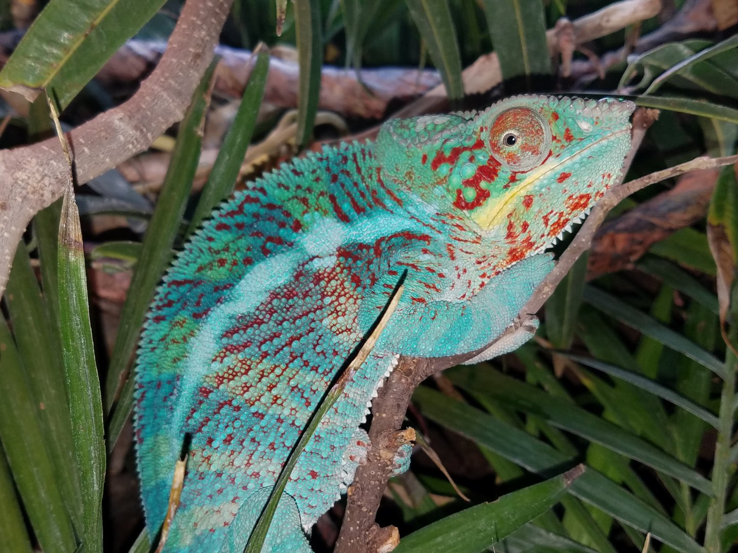 Here’s a pic of Jeppitto he was 7 passed last week he was a great eater loved to expore and come out to play, never bit me. A real ladies Cham. He was my 1st Panther Ido miss him