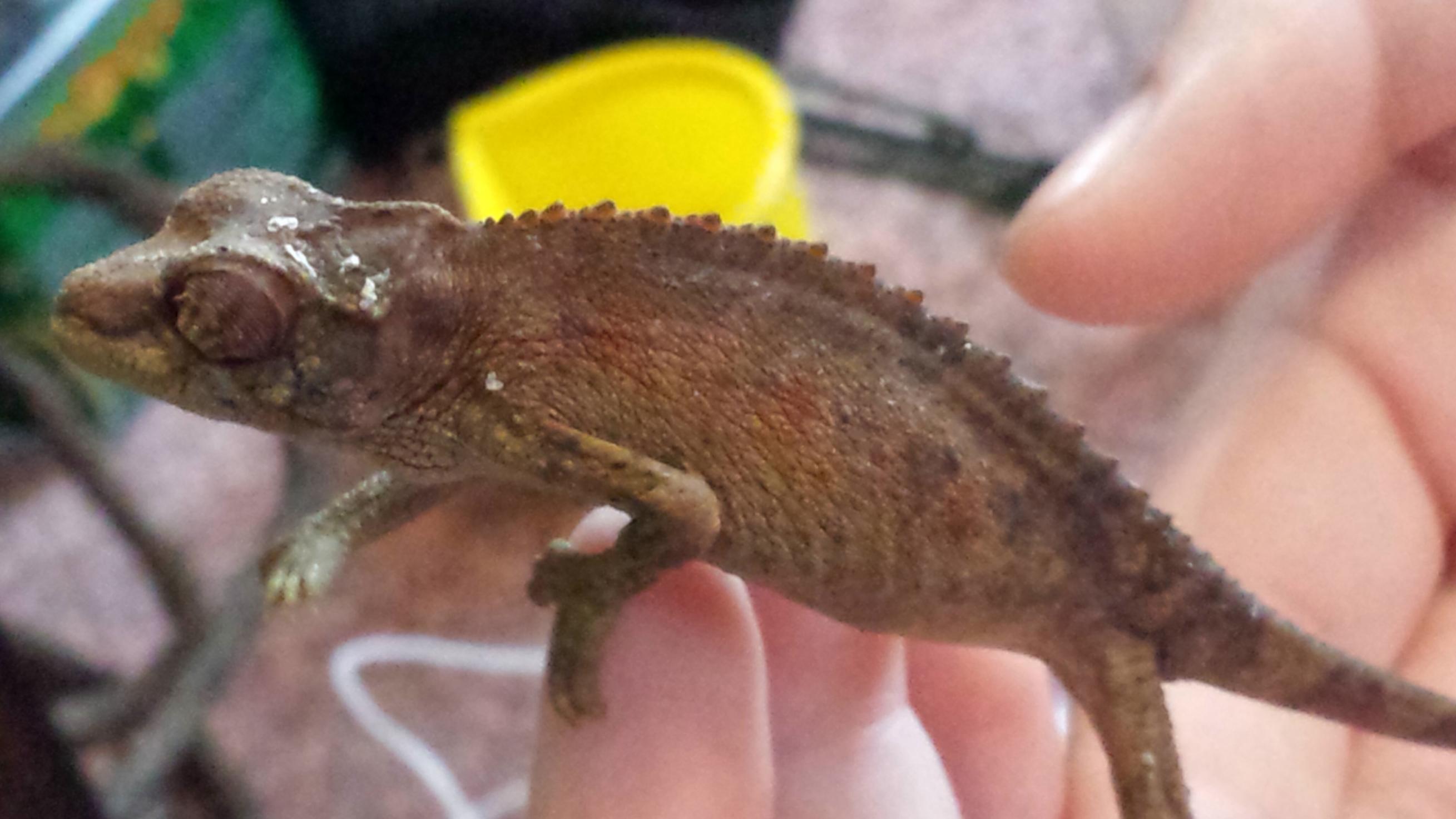 this is my new little girl Zoe, ant we just got her today. shes abt 3-4 months MAYBE 5 tops. anyways, shes the sweetest little girl ever, doesnt hiss or back off when we ried to hold her not 5 mins after in her cage (i know i shouldnt have but we had to move something) and these are her resting colors. just wondering if the copper and brown on white is normal on these little ones, never had one before. is brown right too? she was a little green, but the rest of the femaView attachment 95574les in her petstore setup were the same coloring. thanks!