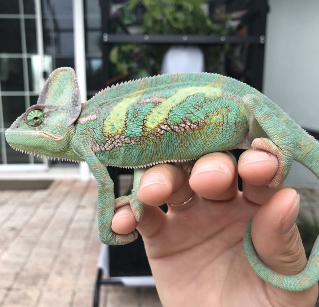 Can anyone advise on what sort of age I would expect veiled chameleon to have developed its full colouring. There’s a bit of conflict on if he/she so hoping will tell for sure some time soon! It looks like there is some stripes starting to develop on sides