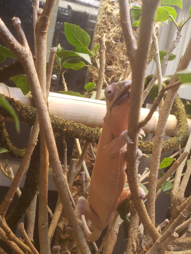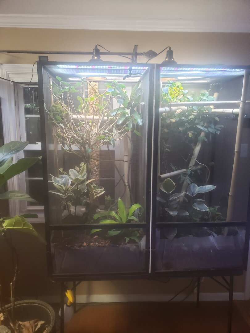 She was in a very small screen cage when I bought her, her new enclosure is 2x2x4 reptibreeze screen cage.