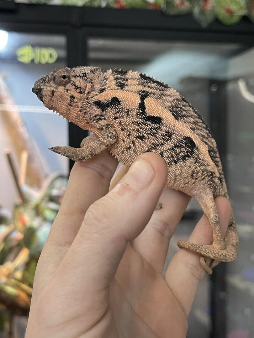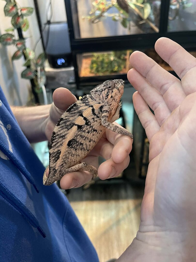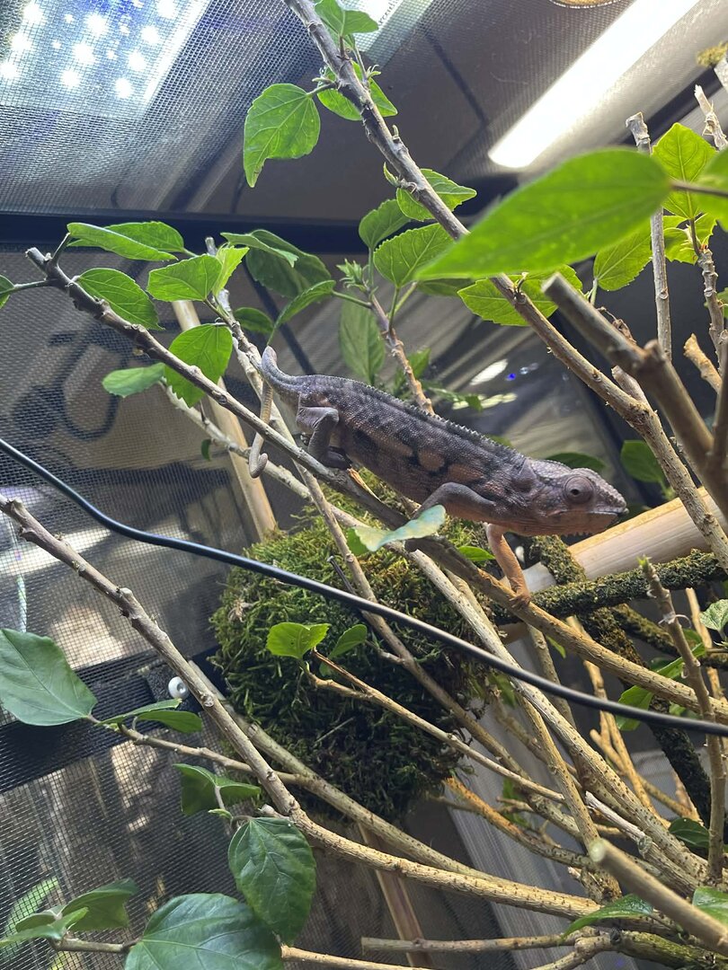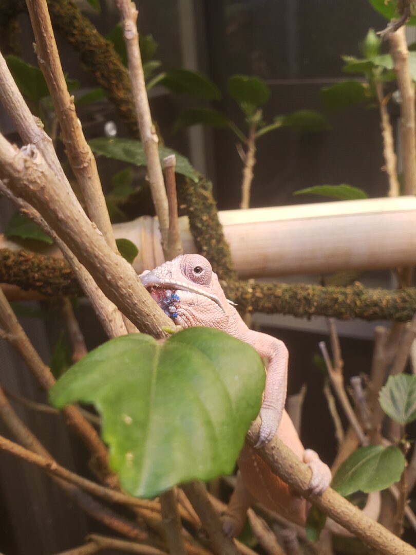 I picked up this female panther chameleon yesterday from a local pet store. She is currently being treated for a fungal infection on her face. The LPS said she has had this black spot under her mouth for a couple months, they treated with antibiotics and it got worse so they switched to antifungal and said it hasn't grown since they started the new treatment but it hasn't gotten much better. I plan on cleaning it out with provodine-iodine 10% solution diluted to 1:10 with lukewarm water, followed by the antifungal cream.