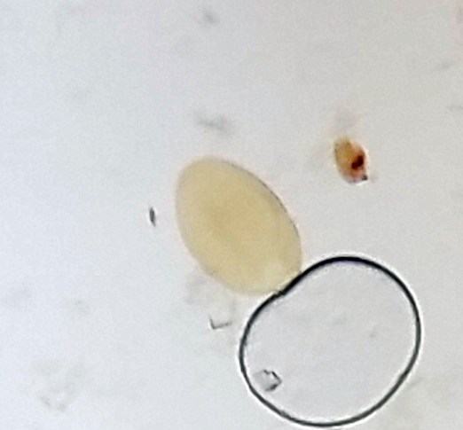 Long time reader, first time poster. My wife and I rescued a sub-adult Veiled Chameleon that was found crossing a busy street in an urban part of Vermont. The lizard was emaciated at the time, and after eventually finding the owners learned it had been loose for about two weeks and that they were not interested in taking the animal back. The Chameleon (we named him Valspar), did start to put weight back on, but has plateaued and is still pretty scrawny. After finding out none of the vets in my area do in-house floats anymore we decided to do a float ourselves and see what turned up rather than sending out to a lab (my wife works in the veterinary field, so while not a vet, we have access to all the necessary materials). I believe what I am looking at is coccidia and pinworm eggs, but I could really use a second opinion as I am not confident in my ID (the cells with two nuclei also look like giardia to me, but from my understanding that is not very common and giardia cells are much smaller, not that there is anything in the pics for scale...).