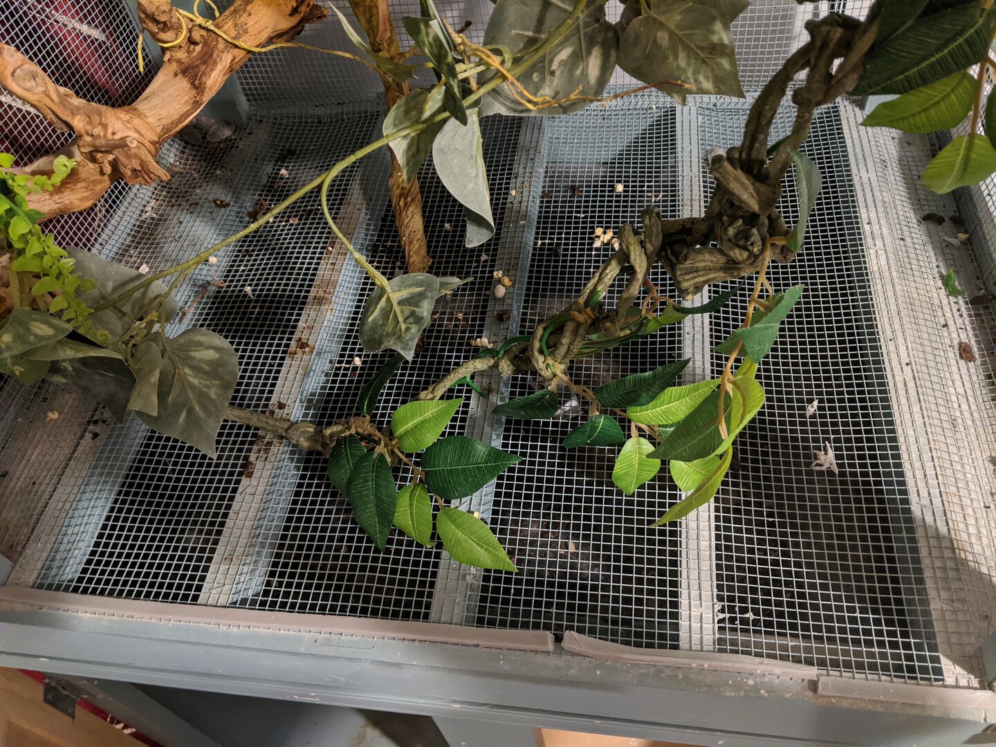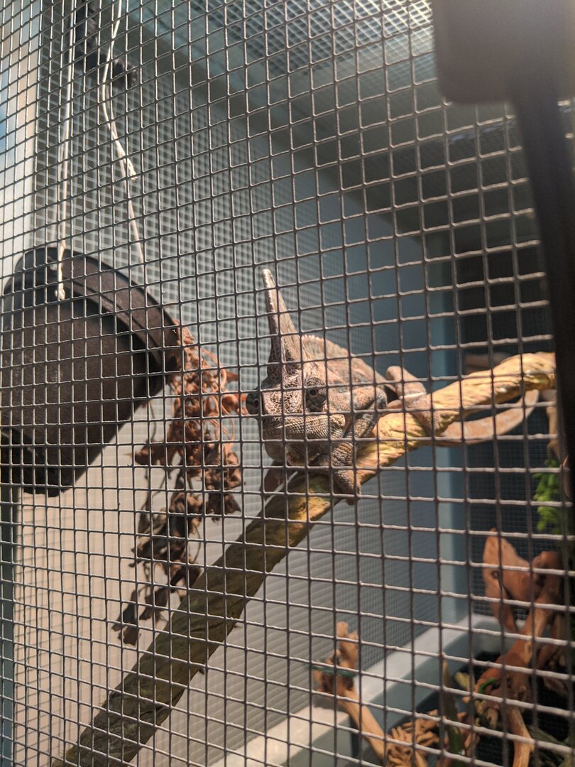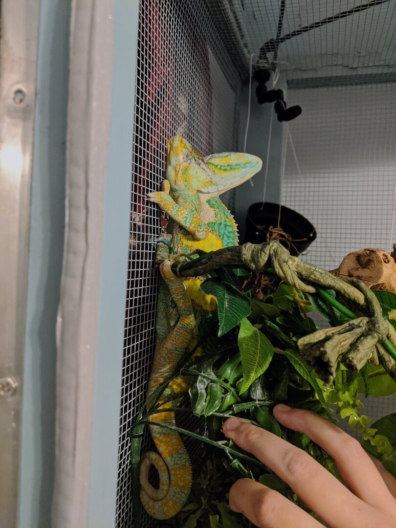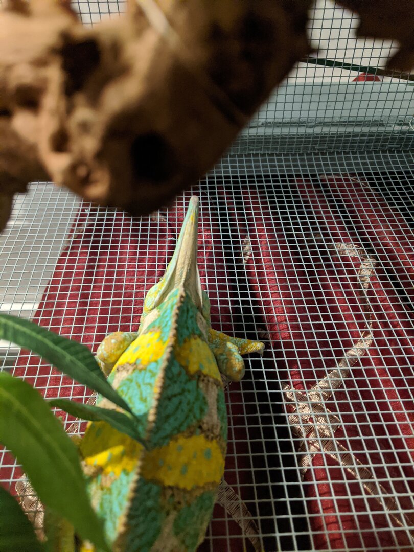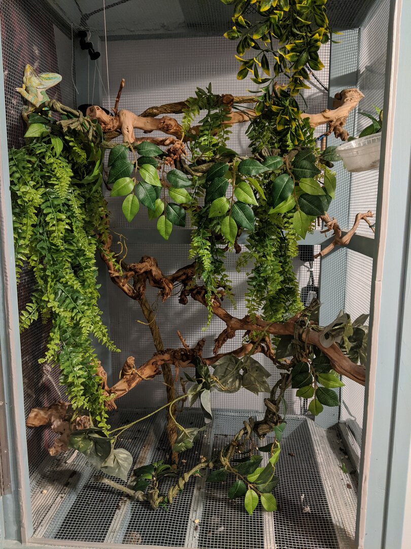 What I do feel more confident giving feedback on, if you are looking for ways to make your chameleon more comfortable is the cage setup in terms of branches and plants. A great resource is the Chameleon Academy: