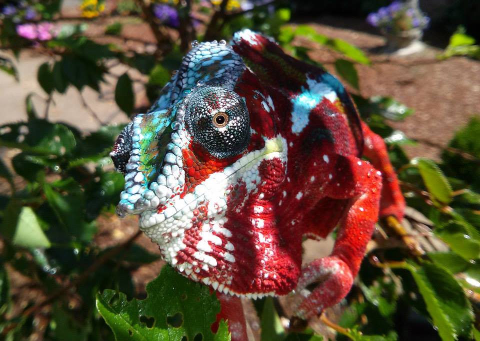 He wasn’t even for sale. I was looking at another chameleon and they brought him out from behind the scenes to show me how cool he was. As usual, pics do him no justice. He’s orange like Carrot Top with pretty indigo dots. That’s why he’s Tony the Tiger. My little colorful and unenthusiastic friend.