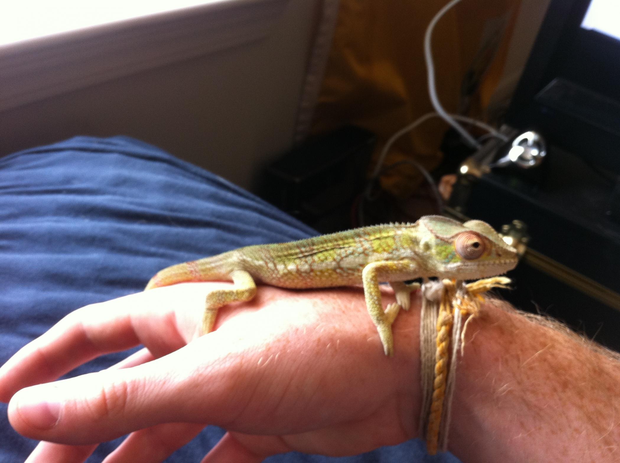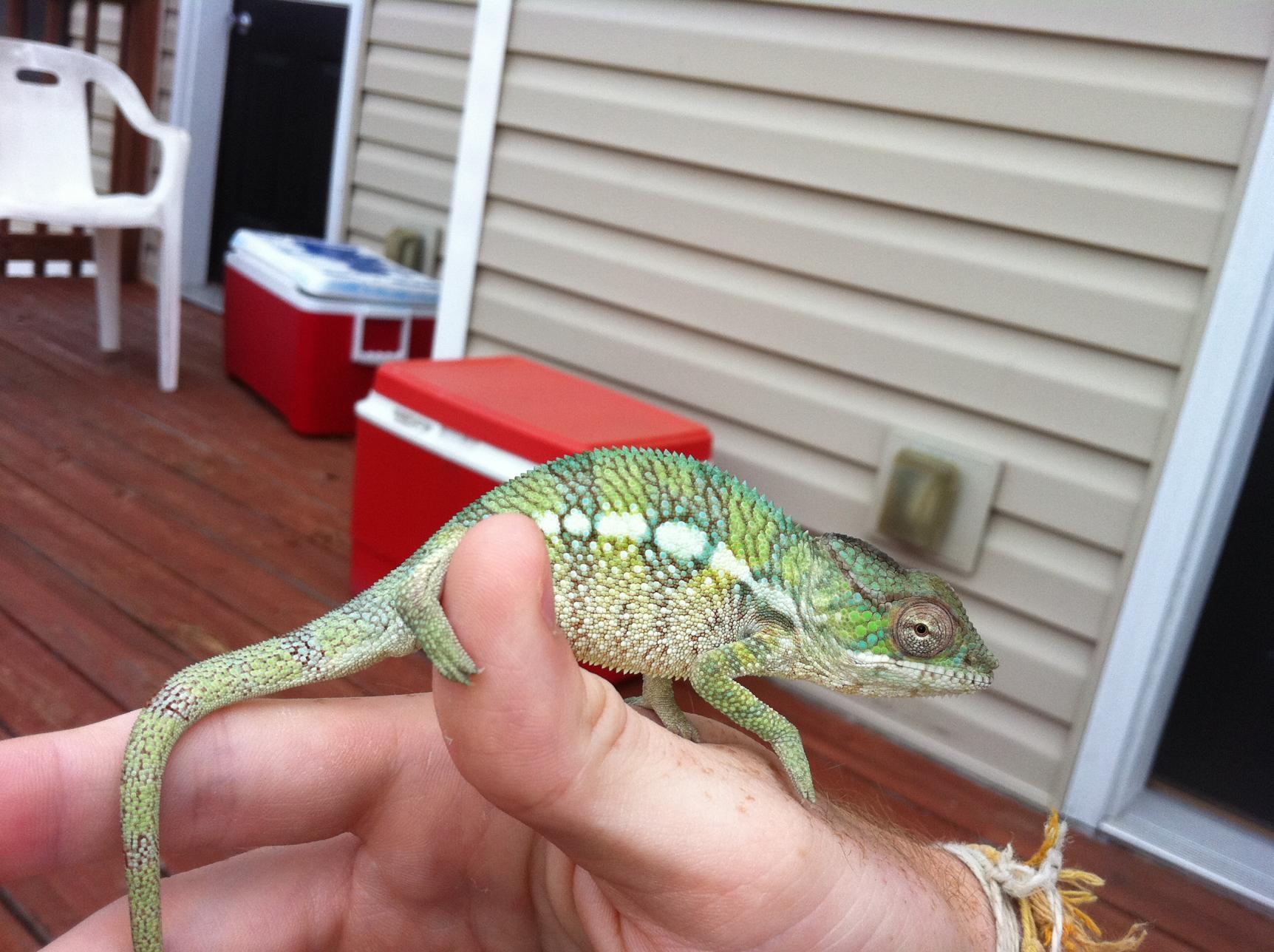 My little cham is starting to show some new colors and I wanted to show everyone his progress! The first picture was about a month ago. the next 3 were pictures taken today and the last one was also today but it was more on the funny side hahaha NOM NOM. perhaps its contest worthy haha