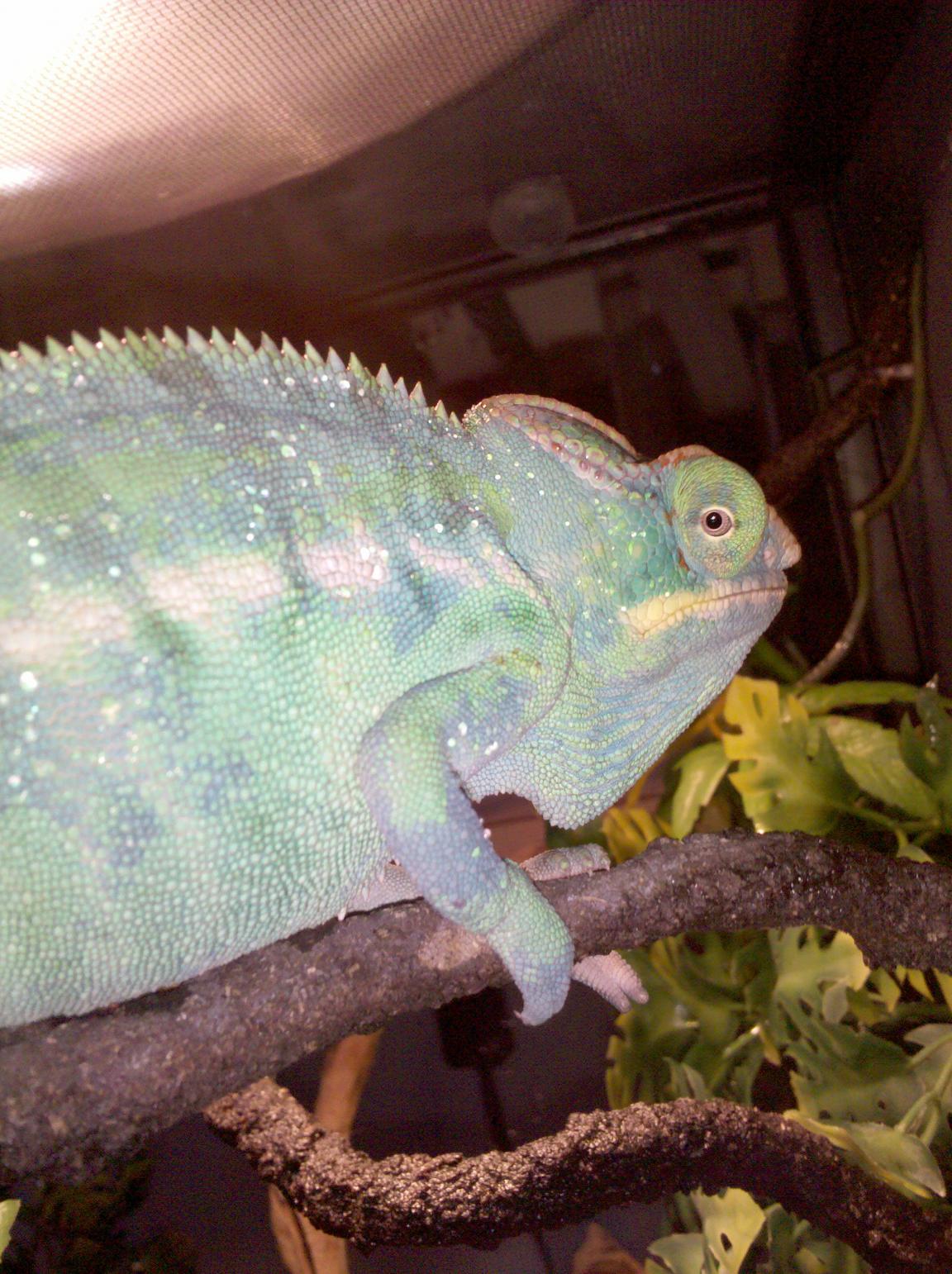 Well i took this picture with my droid phone. The flash and his basking light had some weird affect on the picture.And no i didnt mod it in any way.Well here it is enjoy