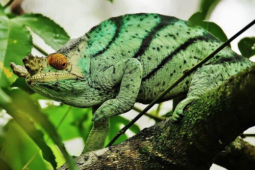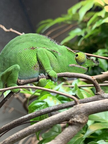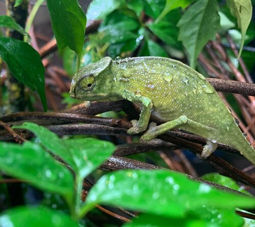Casque of a veiled, Panther Color, Lifespan of a Labordi Cham, Horns Of a jackson, Size of a Pygmy cham..... That would be a dope Cham...... For About 5 months