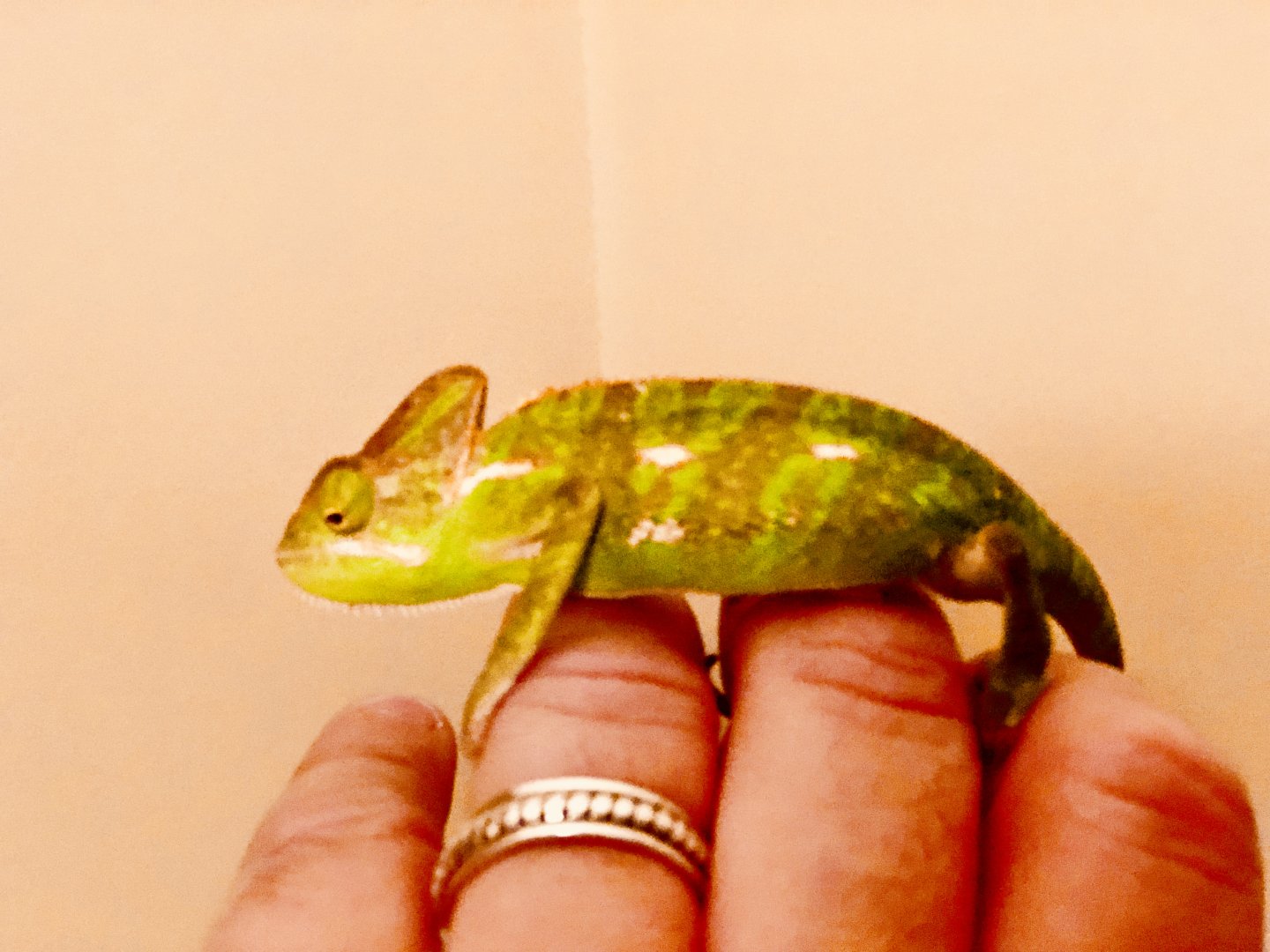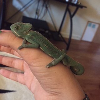 My names Crystal, 25 from the Boston area; figured I'd come introduce myself, and my Chicken, a three month old male veiled Cham I got from our local reptile exposition.