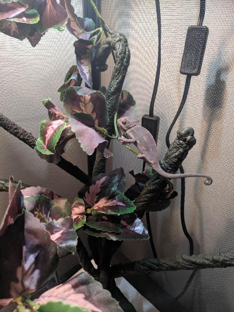 When he gets a little bigger I want to look into building my own tank, and finding a Cham/Cat safe plant to put in there with him so he can have a more natural feel, but since he's so little right now I didn't want to go gung-ho and over do it.
