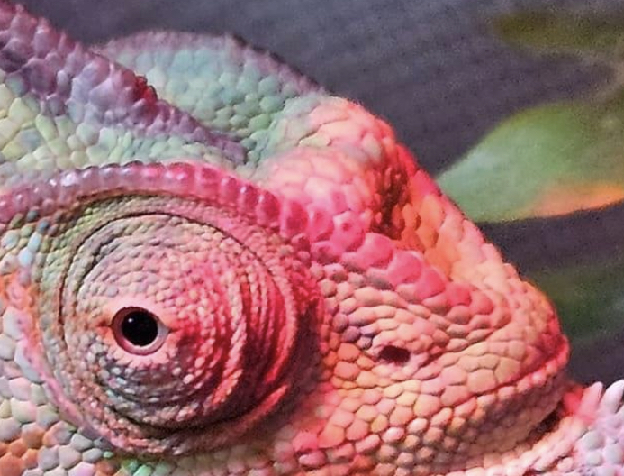 The anatomy of chameleon head is quite complex. The form of the head is usually pyramidal, with very clearly expressed crests (ridges), which are specifically named according to their position on the head and the underlaying bones.