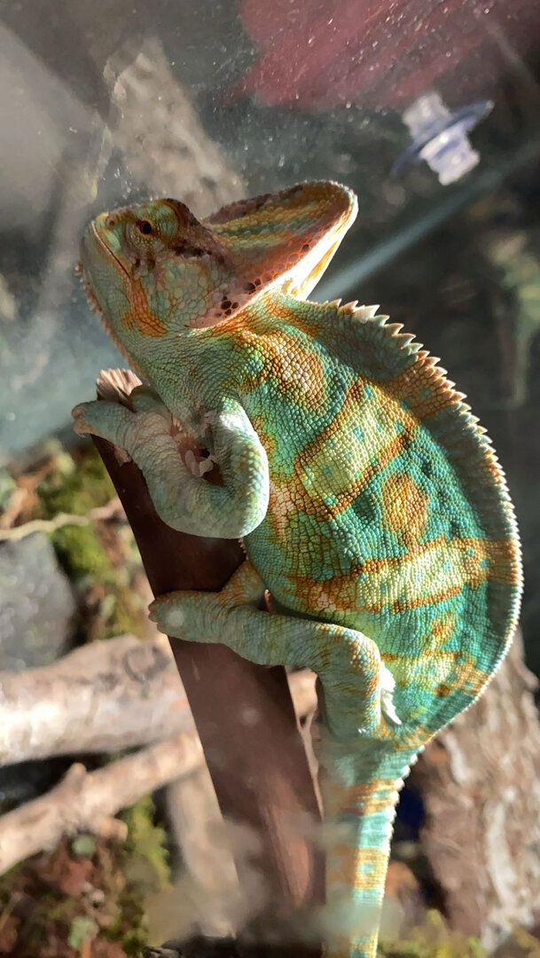I’ve also read/seen that some chams like to be watered personally (spray nozzle is held to their mouth, Cham opens their jaws and drinks), but Rango absolutely hates the spray bottle. Maybe I should put some ice cubes on top of his tank so that he could drink the drips? I don’t have a dripping water thinggy