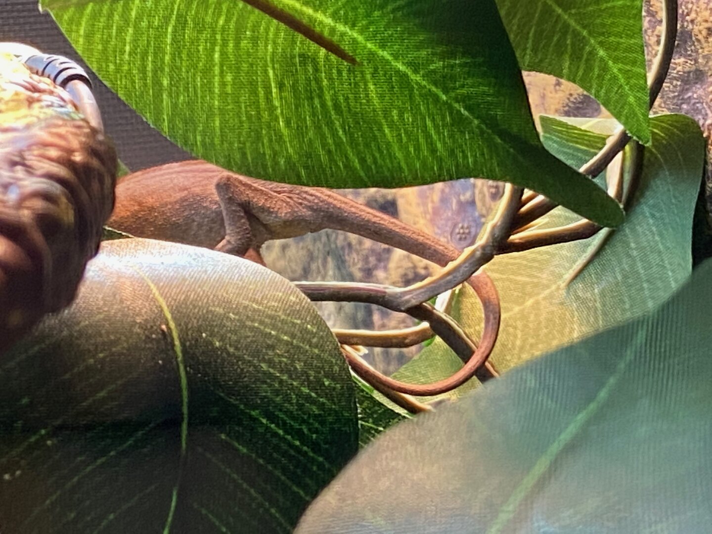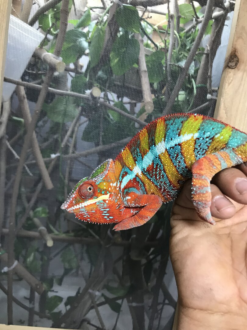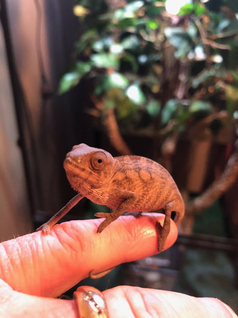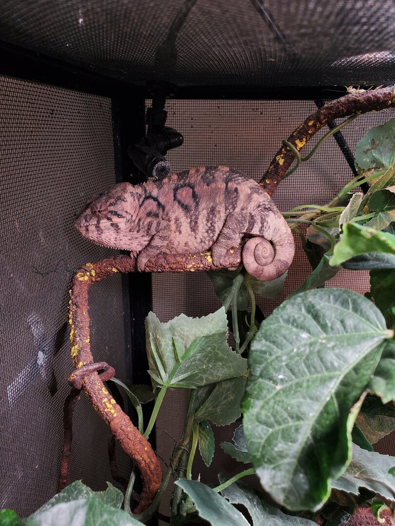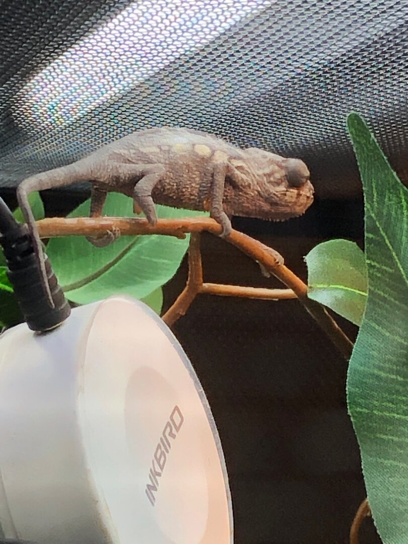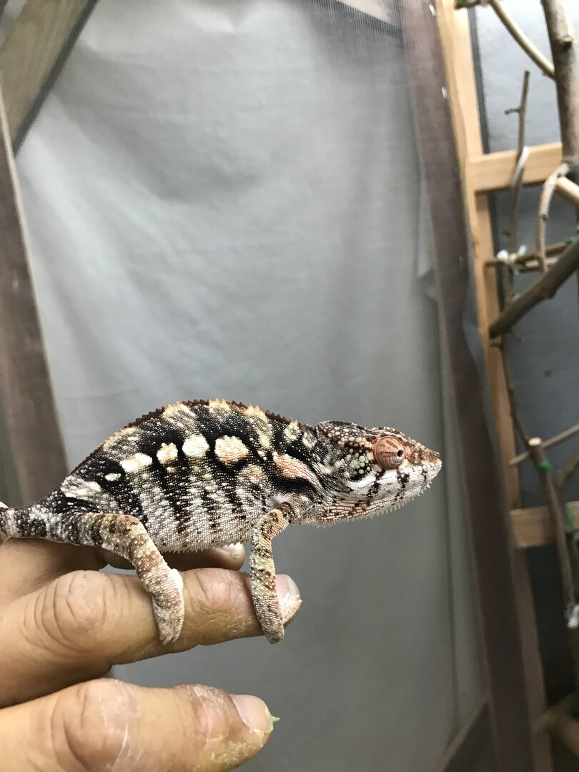Hi, just looking for some more expert advice on my Panther Cham. Wondering if it is possible to confirm sex, now 7.5 months old. Haven't seen any colours other than grey/brown/beige/black. Purchased a male cham, but had a vet tell me they were pretty sure he was female. Any help appreciated. Notee photos where you can see him completely are 1 month old, pictures of tail area only are today as he was being paranoid so didn't want to freak him out more by handling him.