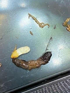 - Crickets (daily but are going to cut back), dubia roaches, super worms (daily offered but rarely eaten), horn worms (1 or 2 a week), wax worms and meal worms (i know they aren't good, we got them to supplement until the store ships our new bugs out. BSF larvae is on the way in addition.