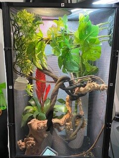 - future cage-- We do have two cages that are the 24x24x48 reptiscreens. We haven't set him up in them because we cannot fit them in the car so he will have two separate cages at both of the houses. we have duplicates of everything for both cages and plan on trying to duplicate the setup for him as best we can.