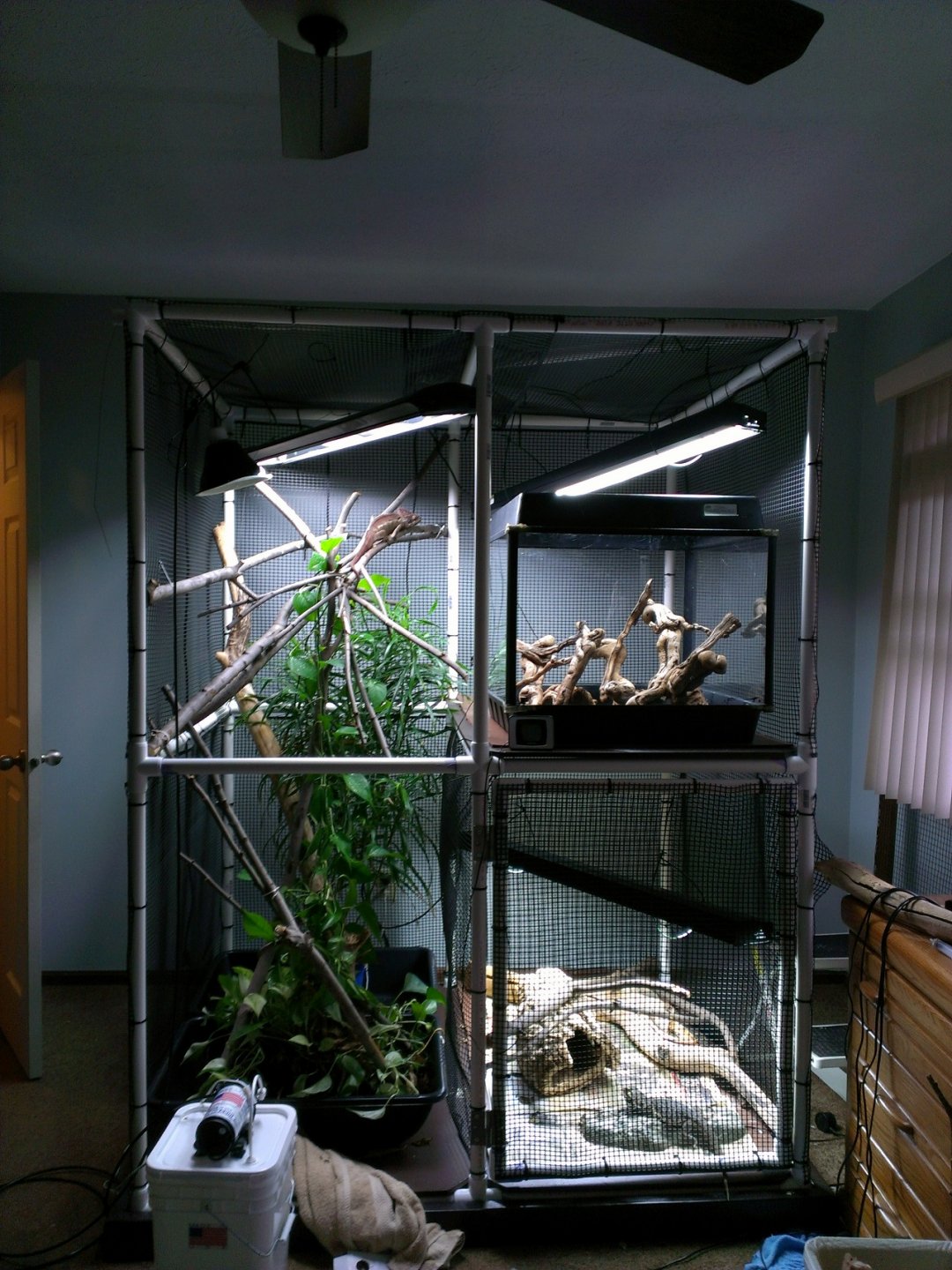 chameleonowner32 Avid Member Jun 1, 2016 #1 Just pvc and hardware cloth. About 100$ including the plant and drain setup for the tub. Attachments IMAG1490.jpg 124.1 KB · Views: 523 IMAG1491.jpg 158 KB · Views: 568 IMAG1493.jpg 123.6 KB · Views: 503 IMAG1495.jpg 103.6 KB · Views: 562 IMAG1497.jpg 106 KB · Views: 523 IMAG1498.jpg 106.2 KB · Views: 1,050