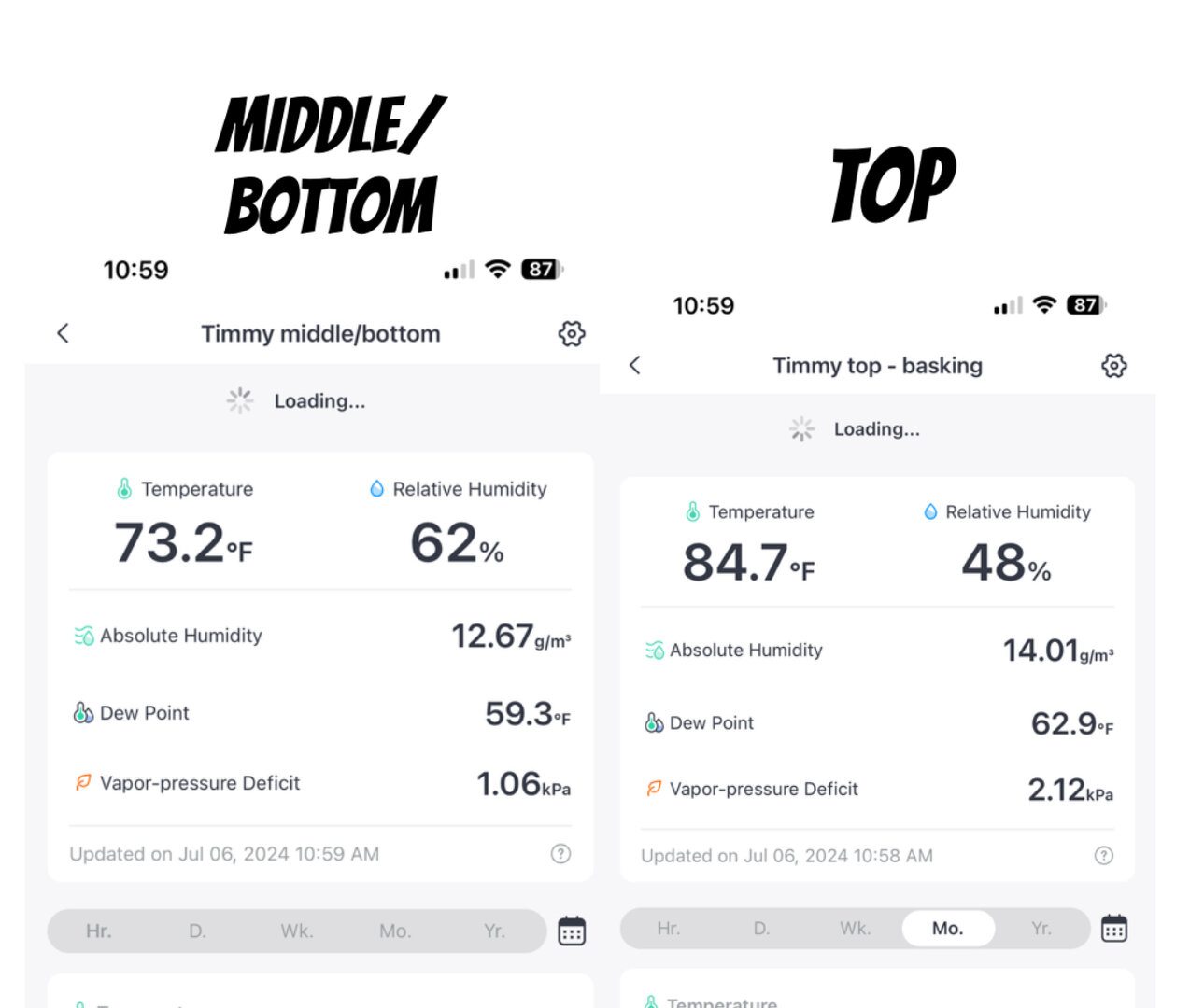 I have sensors with Bluetooth readings on an app and temperature gauges you buy from PetSmart