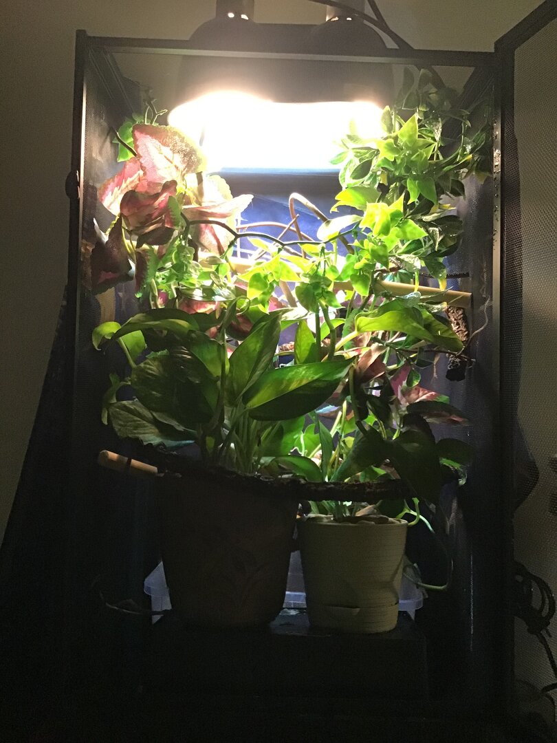 Yes, just about every leaf of my Pothos has little bite marks in them. Lol. I have 2 somewhat well established Pothos in each of my chams enclosures to help reduce them eating them to death. I also have a plant light in one of the sides of the dual dome that helps keep all my plants alive.