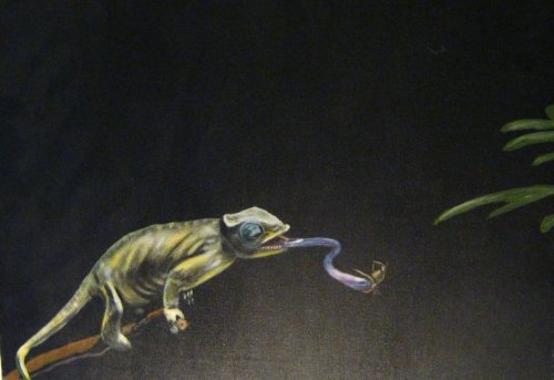 Send my sister a picture through email of your chameleon and let her know how big of a drawing or painting you would like.