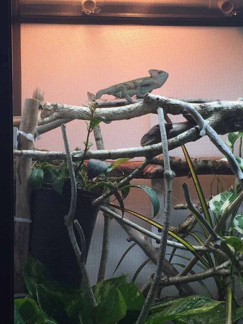 OMG I just can't get over him. ❤ He is quite shy right now. I literally can not make eye contact or he goes into a plant. BUT he is settling in wonderfully. He had a nice long drink from the plants this morning when the mister went off. And I gave him 2 small hornworms while he was hiding in the plant lol. But he just came out and found his feeder run. Ate 4 baby dubia and 6 baby crickets! Now he has found the basking area and is looking all proud heheheh.