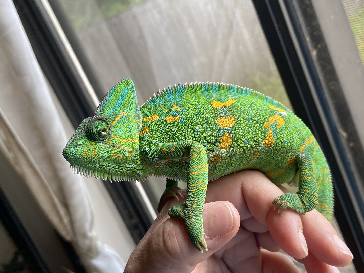 • Handling - How often do you handle your chameleon? Only three times Our beautiful veiled ladies aren’t so keen on being handled. You will want to work on building trust with her though. This is a great blog on that. https://www.chameleonforums.com/blogs/building-trust-with-your-chameleon.2396/