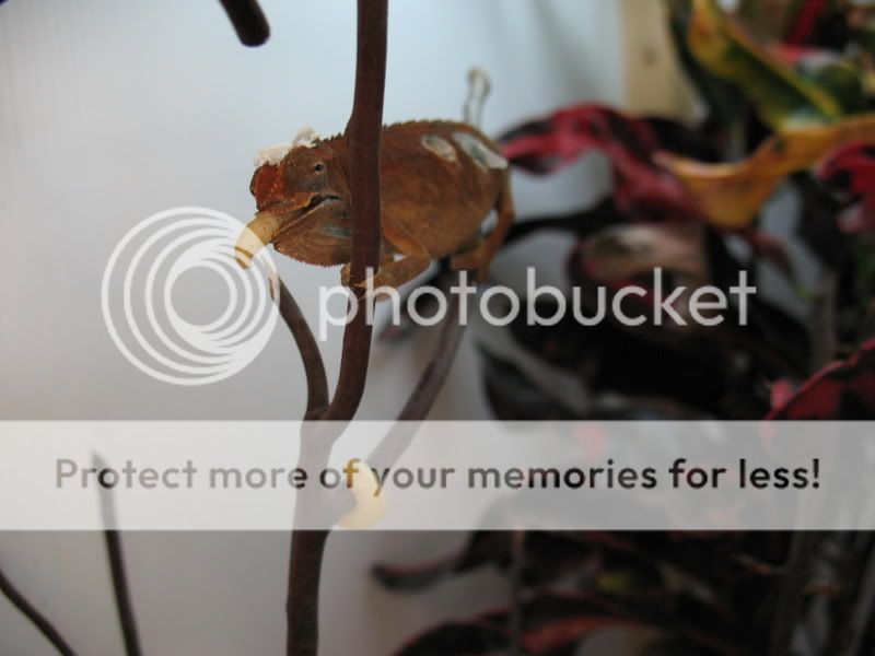 This is the little female that has the mouth infection that I believe is healing nicely. She shed today, which is great.. you can see the lesions on her side from baytril injecctions. One more shed, and she will maybe be back to normal, with the exception that part of her lip is now gone. Just to put aside the notion that I am nuts, she is eating a wax worm.. a rare treat because of the high fat content.