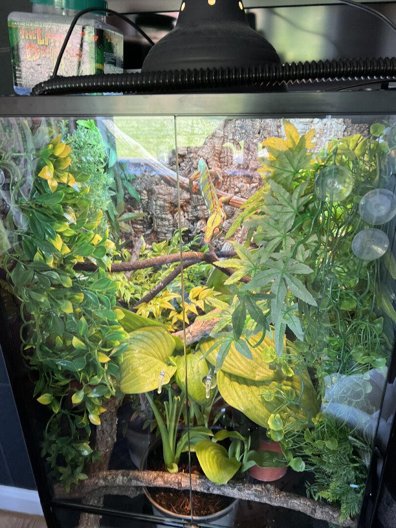 Also currently I have a few of the real plants in his non-bioactive enclosure. This is making it hard to find poop/urate has anyone got any tips or advice with how to get on top of this and again if I see it on a leaf should I use water or viv cleaner on it? I don’t want to be taking the plants out to clean them as they’re surrounded by branches supporting each other and it would really disturb his current set up