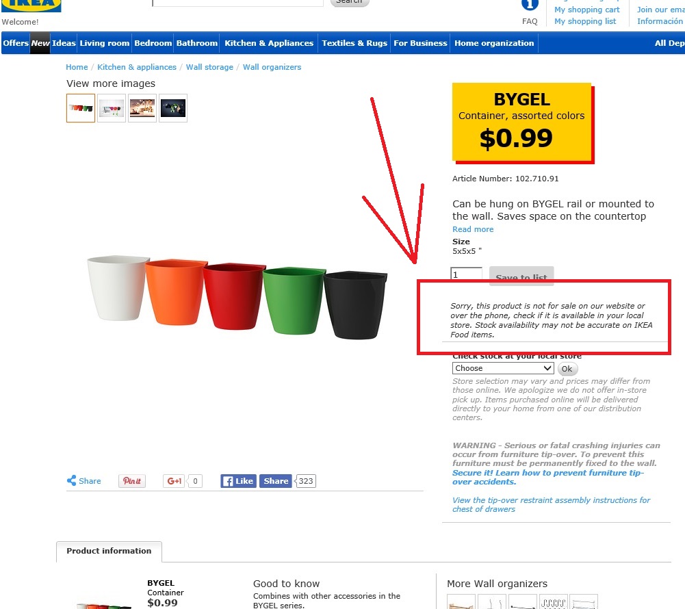 Ikea has certain items that are only available in the store, and that they won't ship. That's probably what's going on. The $2 a piece isn't bad, especially if that includes shipping.