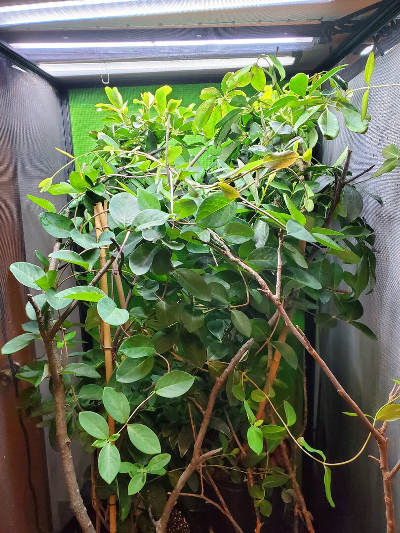 I watched some videos from Neptune the Chameleon and she talked about placing big vertical branches on all four corners to attach horizontal and diagonal branches with zip ties. I love how easy it is, like chameleon scaffolding!