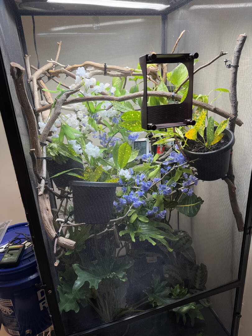 i’m currently getting a panther chameleon in about 2 weeks and i’m getting his enclosure set up. i think i set up everything correctly. is there anything i need to add or do to his set up. his basking branch and uvb branch are both 6 inches from the top of the screen and i’m using a 60watt and t5 arcadia 6% and a jungle dawn for the plants. I have the repashy superfoods SUPERCAL NOD, and the repashy calcium plus LOD