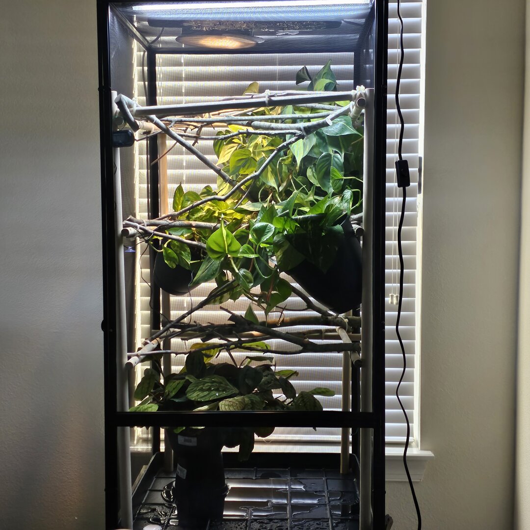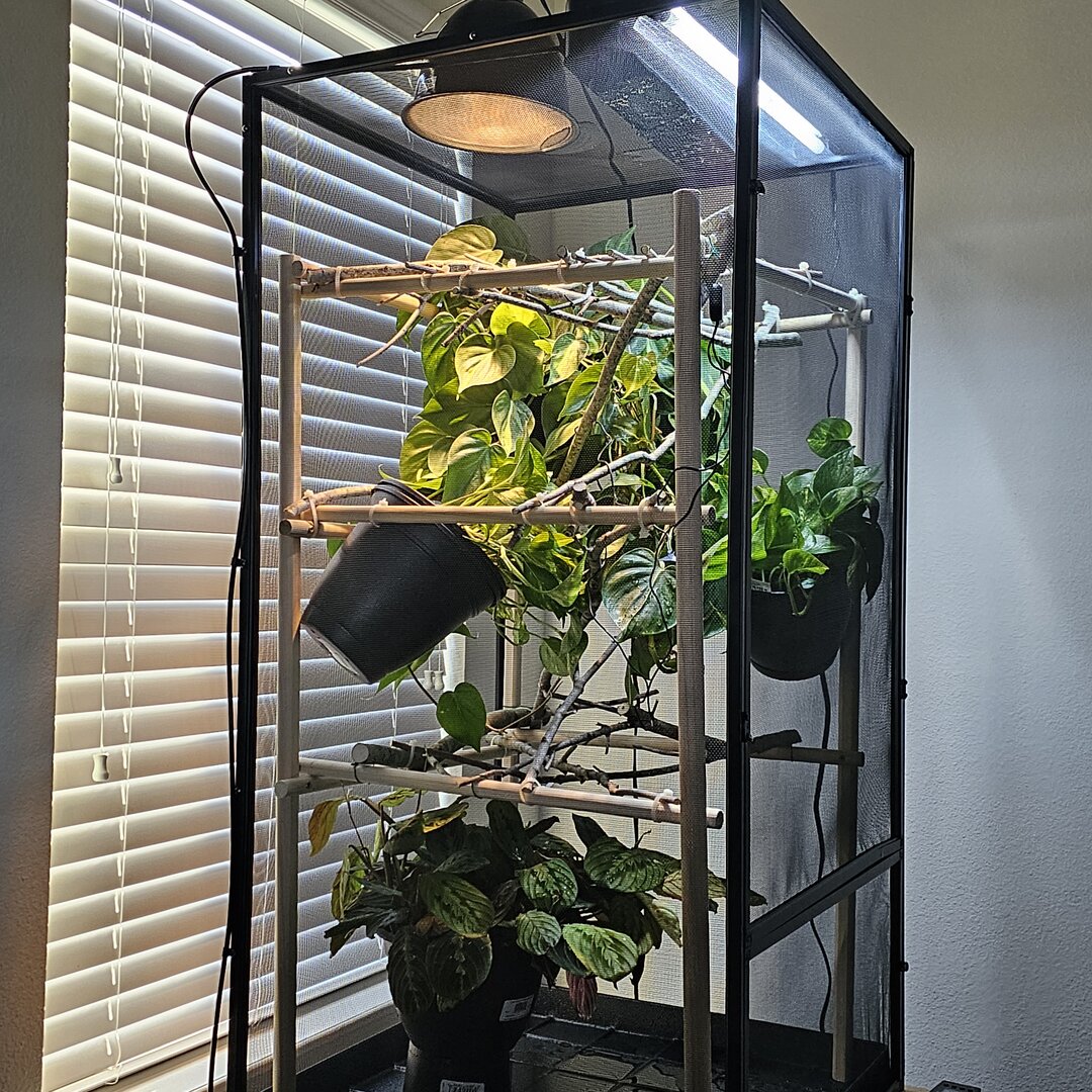 If all goes according to plan, we will be welcoming a baby panther chameleon, Captain Kidd, this coming Wednesday! Attached some photos of his new home! Used Bill Strand's forest edge as inspiration. Excited to share the Captain's journey soon!